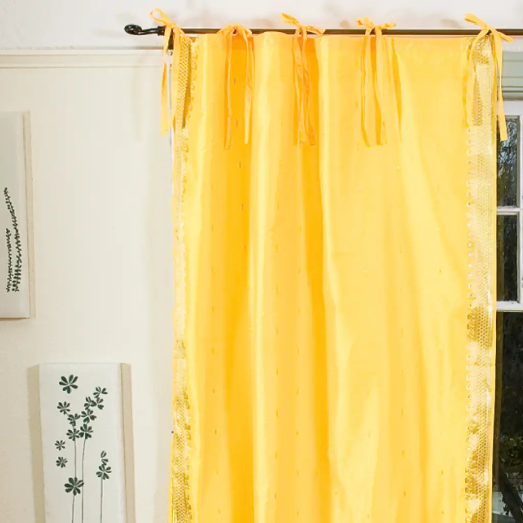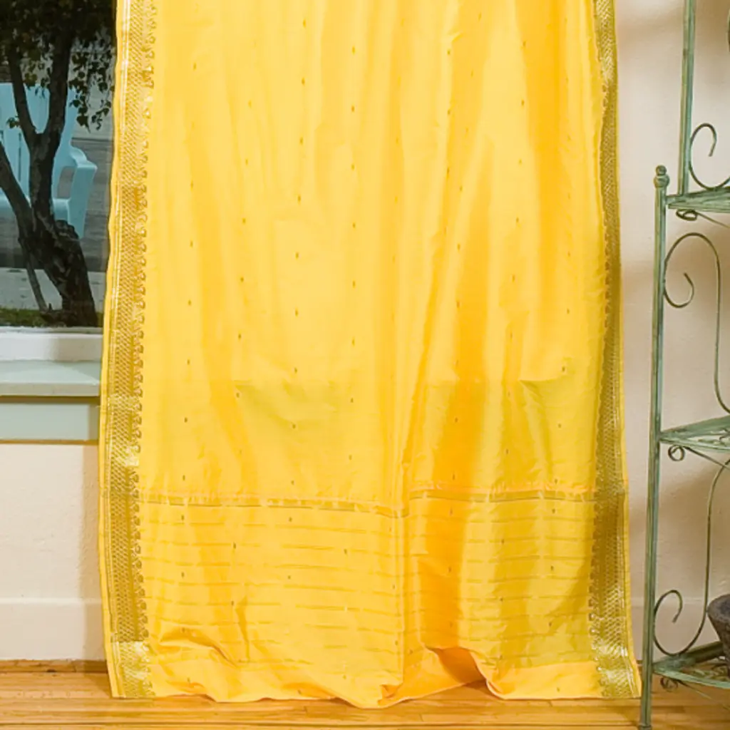 Yellow Tie Top Sheer Sari Curtain / Drape / Panel - Pair