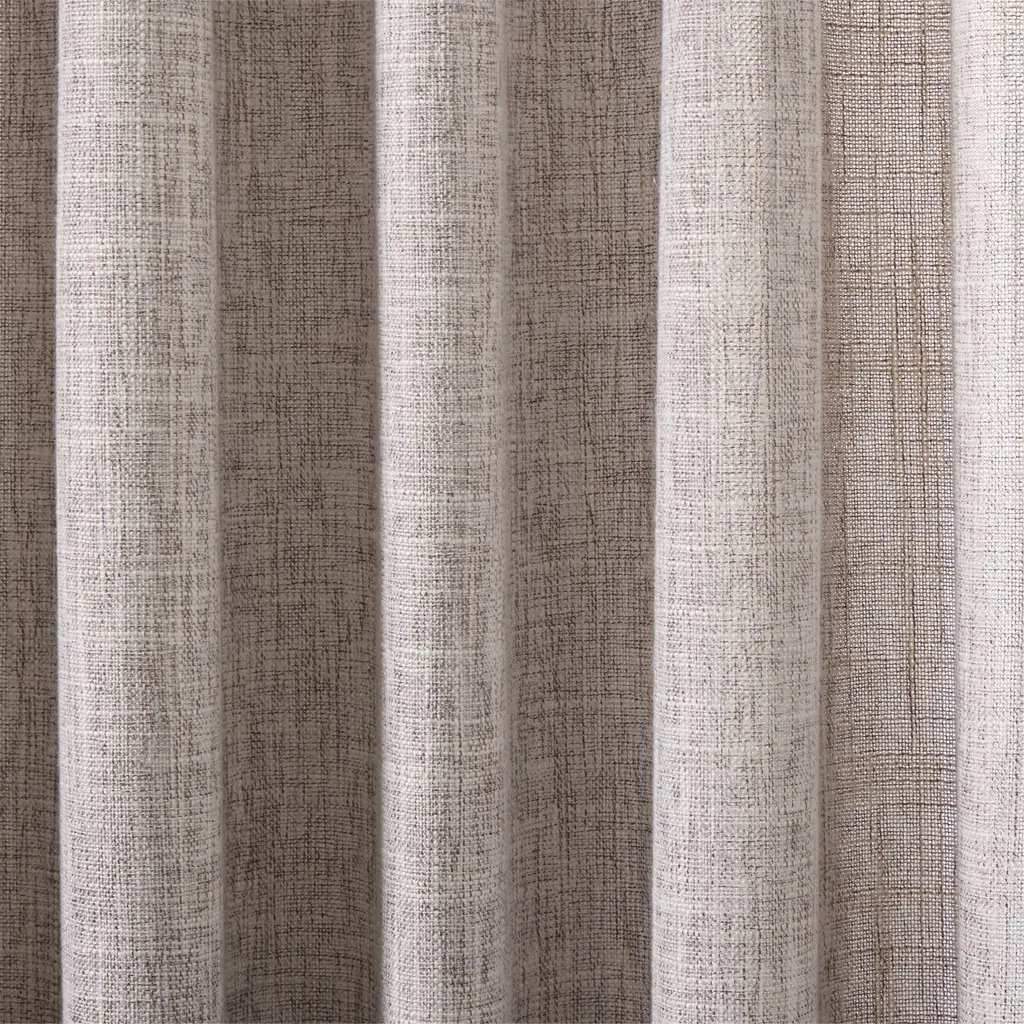 Interwoven threads create a crosshatch pattern. Brings subtle texture to walls and windows. Blackout liner darkens rooms and reduces sound. Crafted in a Fair Trade Certified™ facility.