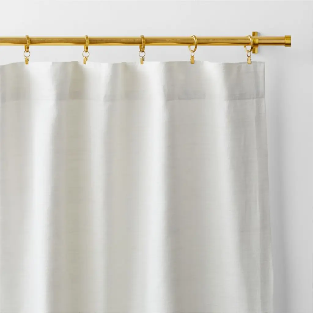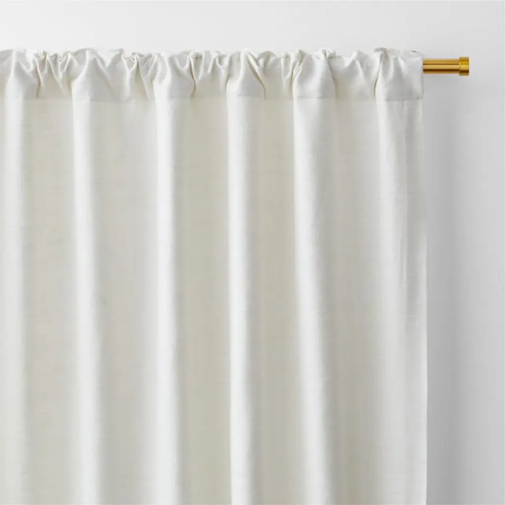 Our Trevino curtain drapes your window in modern organic luxury. Crisp white raw silk and cotton in a dobby weave add depth and dimension to the fabric's naturally nubby texture. The opaque curtain panel creates a soft, natural atmosphere with a sumptuous touch. Hang the curtain from the back tabs for an elegant pleated style, use the rod pocket to create a more laid-back gathered look or add a set of our curtain clips (sold separately). Pair with our exclusive Sari silk throw pillows for a coordinated living room or bedroom.Curtain hardware also available.Learn how to hang curtains in our guide.