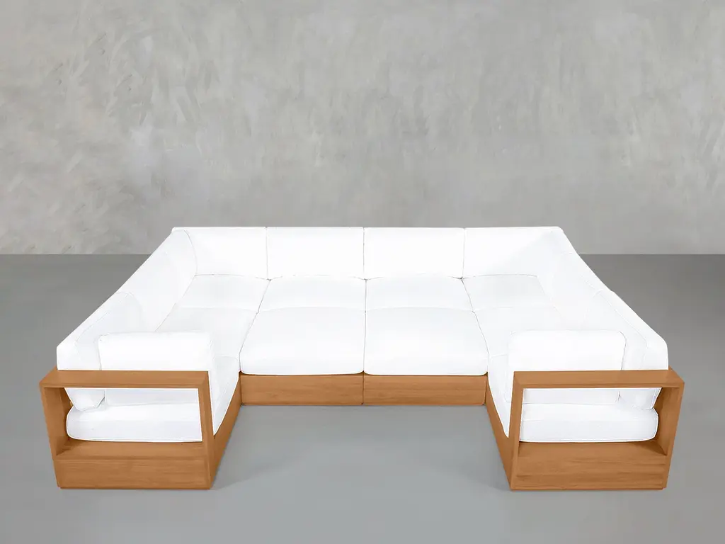 Discover the epitome of outdoor luxury with our 10-seat modular closed-pit daybed. Designed for both durability and style, this pit has room for up to 10 people and offers endless configurations for lounging to elevate any outdoor gathering. Crafted with Grade-A Indonesian Teak and featuring machine-washable, water-repellant, and stain-resistant covers. Explore our range of outdoor furniture today and transform your backyard into an oasis.