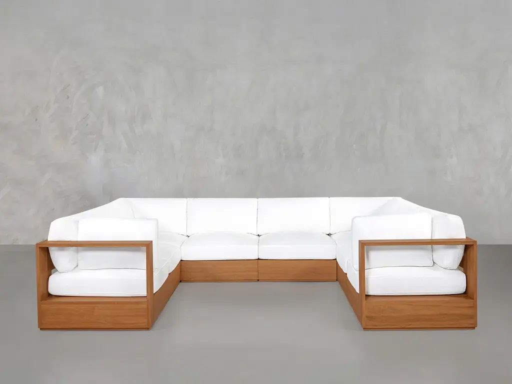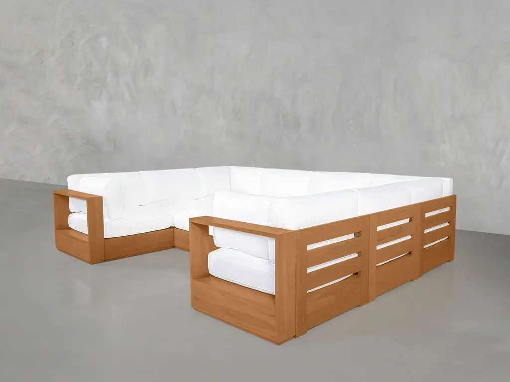 Discover the epitome of outdoor luxury with our 10-seat modular closed-pit daybed. Designed for both durability and style, this pit has room for up to 10 people and offers endless configurations for lounging to elevate any outdoor gathering. Crafted with Grade-A Indonesian Teak and featuring machine-washable, water-repellant, and stain-resistant covers. Explore our range of outdoor furniture today and transform your backyard into an oasis.