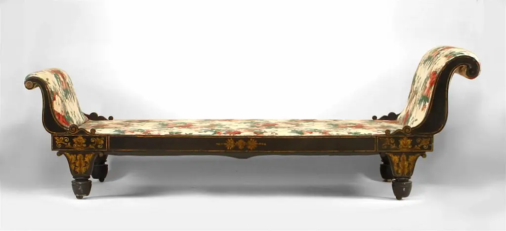 "2 American Federal ebonized and gold stencilled daybeds/chaise with sleigh form sides (PRICED EACH)Each ships with no cushion."