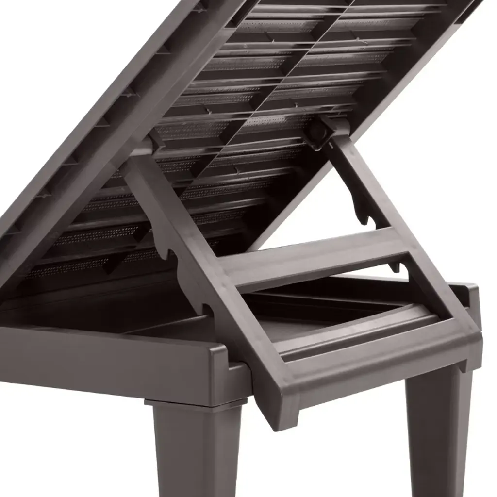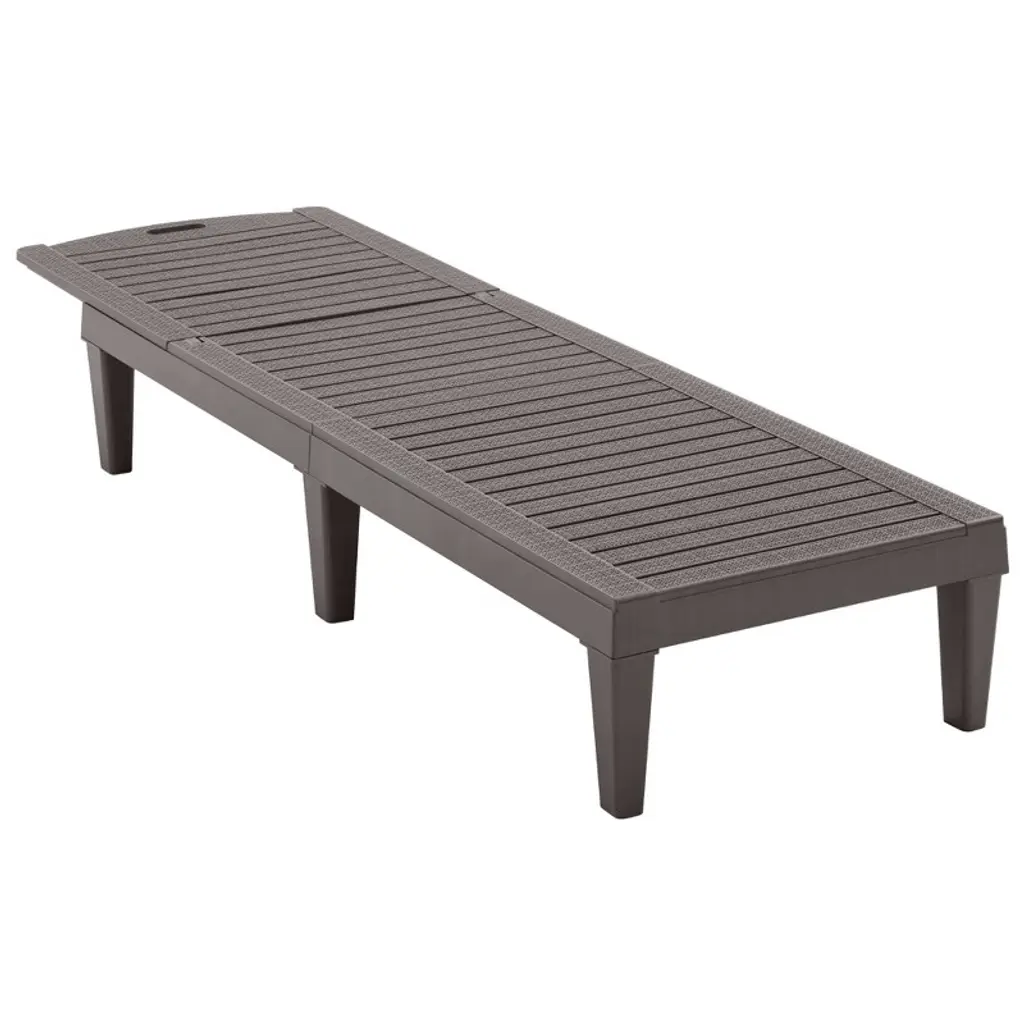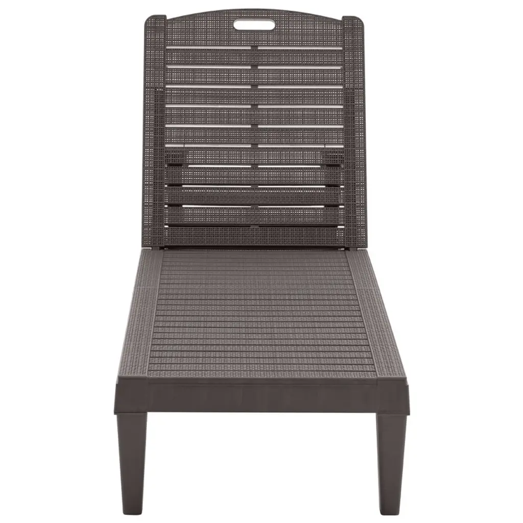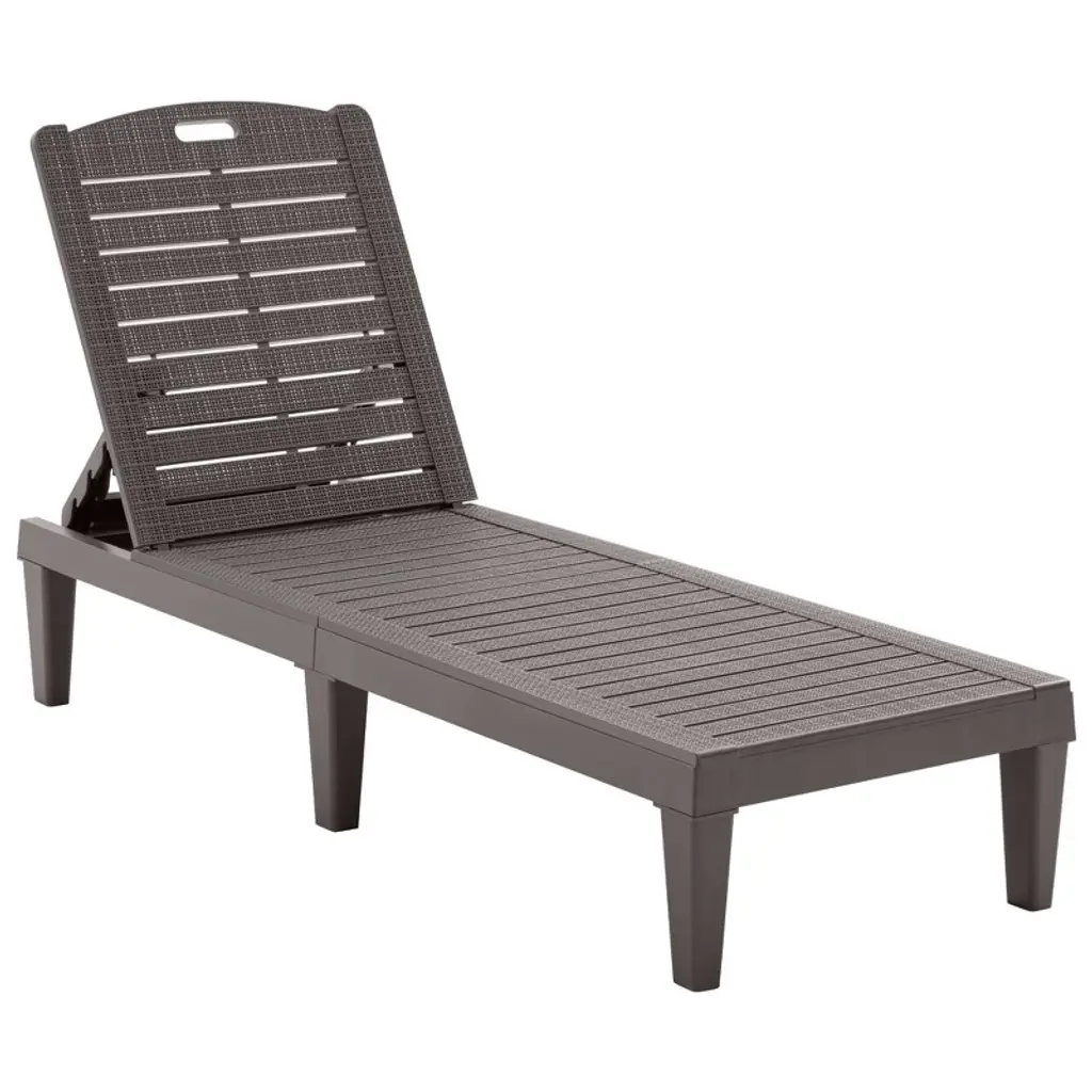Create your perfect outdoor oasis with this set of two durable and comfortable outdoor chaise lounges. Crafted from 100% weather-resistant polypropylene resin, these loungers are designed to withstand sun and humidity without fading, cracking, or peeling. Each features a 5-level adjustable backrest for customized comfort, a curved, ventilated surface, and a convenient built-in handle for easy portability. With tool-free assembly, you'll be relaxing by the patio, pool, or beach in no time. Specifications Overall Size: 22.4"W x 61.8"-74"D x 11"-28.7"H Adjustable level: 5 Material: Polypropylene Number of Packages: 1. Maintenance & Notice About Finish: Liquids should be immediately blotted with a damp cloth. Do not use surface cleaners that could remove the finish. About Hardware: Hardware may loosen over time; periodically check to make sure all connections are tight. About Fasteners: Don't over-tighten fasteners, as this may cause distortion or breakage. About Color: Real Product's Color may be a little different from the image due to the lighting or monitor's display. About Size: Manual measurement has been used, there may be some reasonable error.