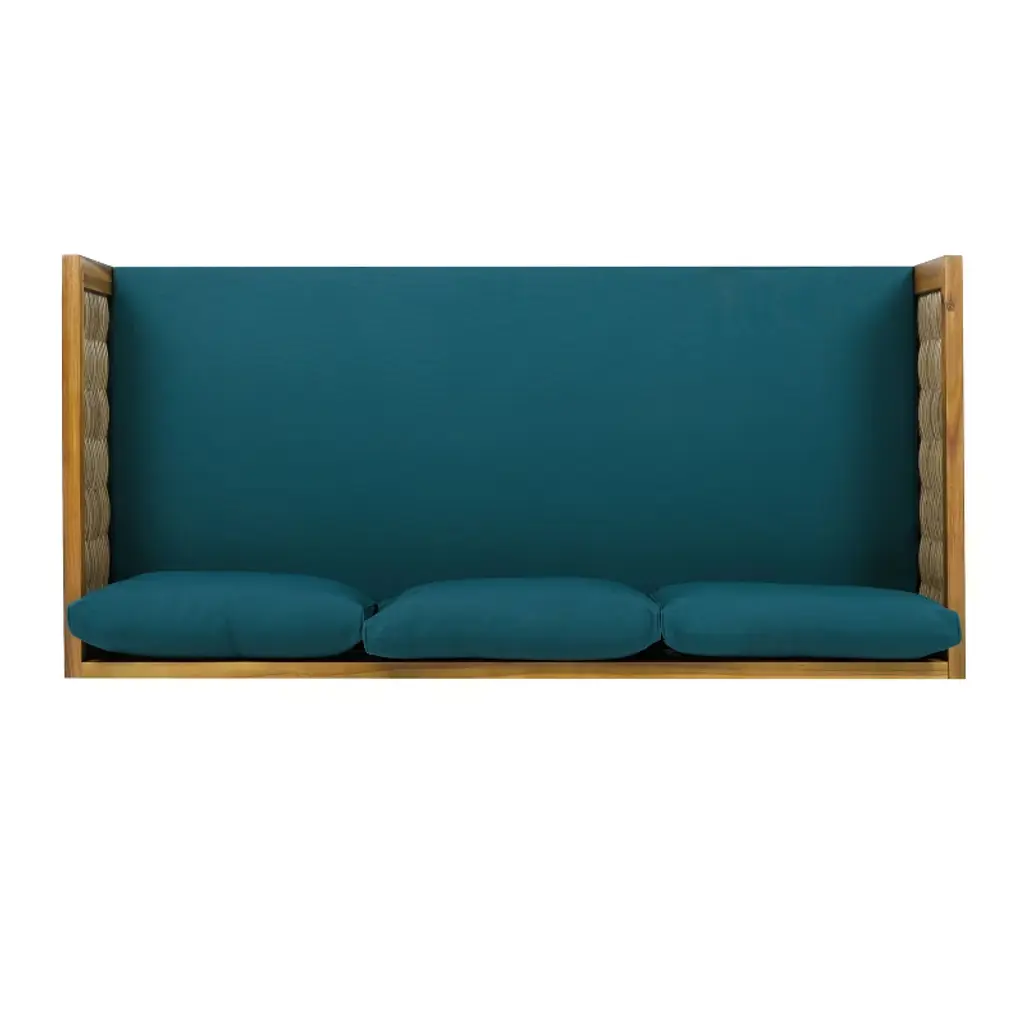 3 Seater Teal Sofa With Rattan Arms For Outdoor Patio