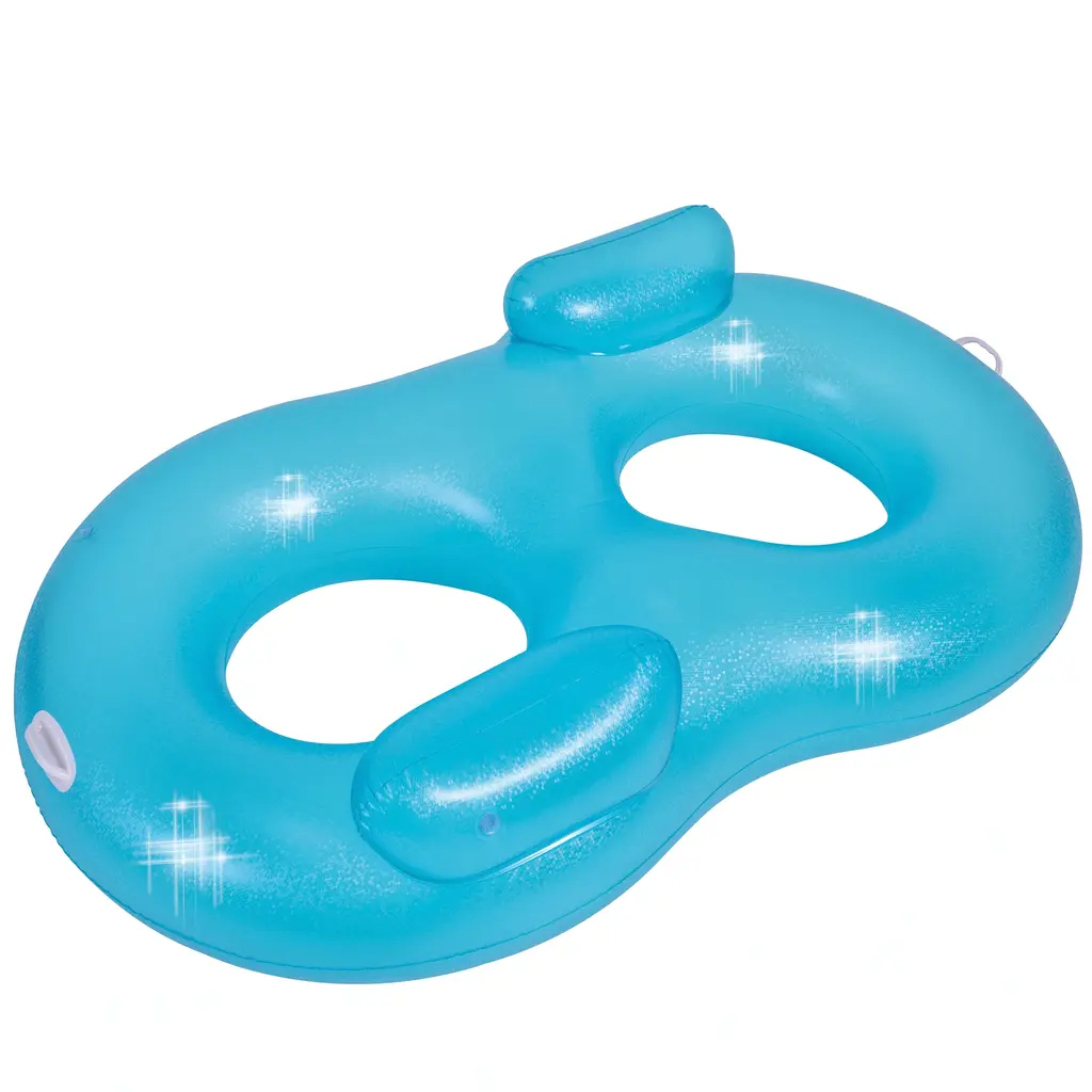 Grab a friend and get to the pool with this large 2-person water lounger. Equipped with back rests this lounger allows for all day comfort. Two sturdy side handles let you safely ride the waves! Mosaic inflatable 2-person water float Heavy duty pre tested vinyl 3 air chambers for added safety Dual back rests Sturdy side handles for safety Repair patch included Max weight 352 lbs Recommended age: 14 and up Dimensions: 74"L x 46"W x 14"D Material(s): vinyl