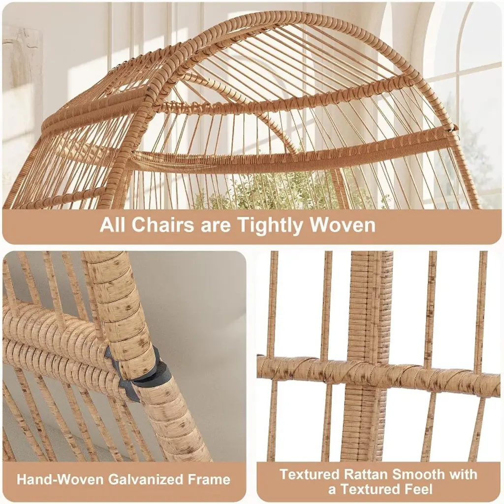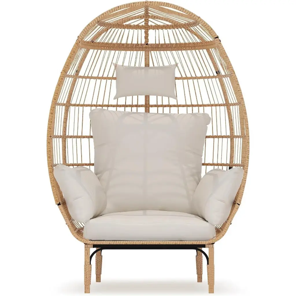 Acekool Oversized Egg Chair With 5 Cushions, Wicker Outdoor Lounger For Patio, Backyard, Balcony & Indoor Living Spaces,beige
