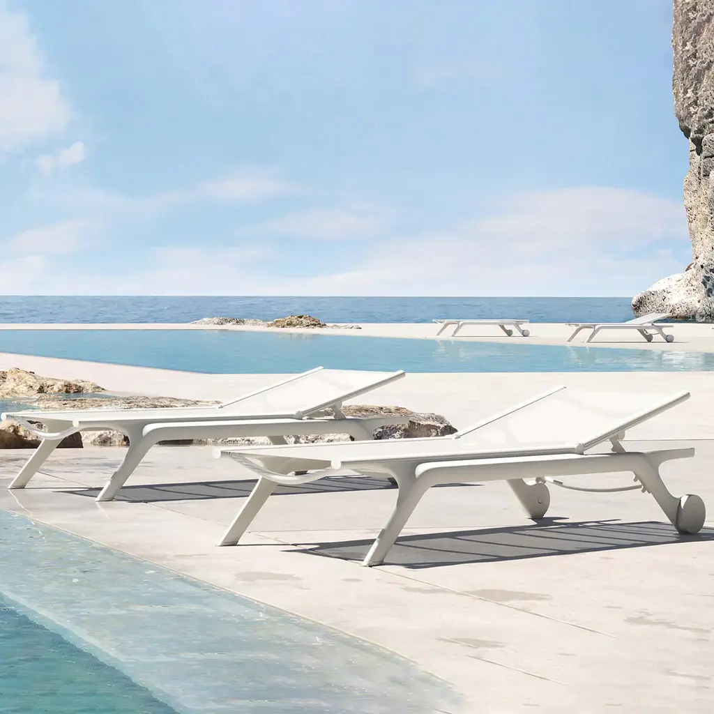 Relax and entertain in style with the Africa Sun Lounger from Vondom. Inspired by the tranquil Mediterranean Sea, these chairs feature simplistic, natural lines and provide an elegant, tasteful outdoor environment for you to bask in. Perfect for summer nights and outdoor soirees, these chairs offer a sophisticated atmosphere for you to enjoy. Highlights