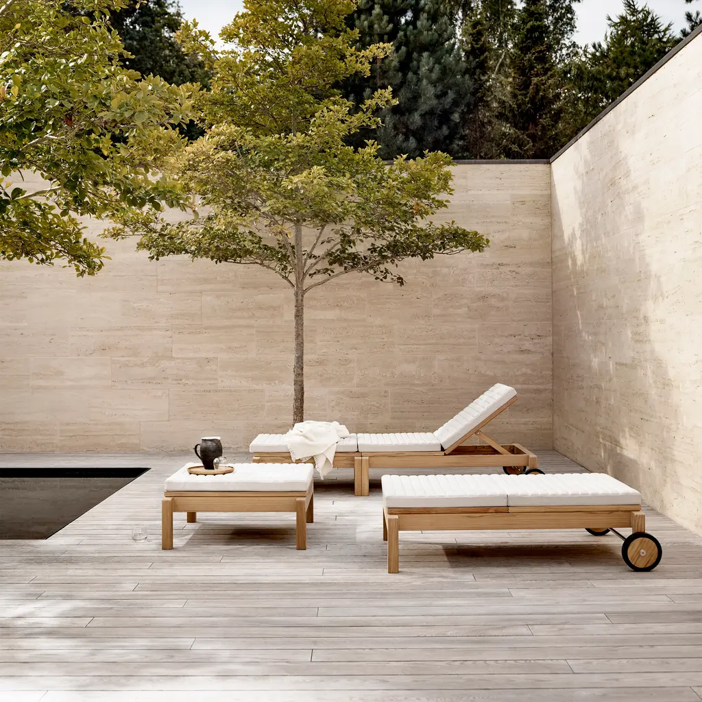 Experience luxurious relaxation with the AH Outdoor Lounger from Carl Hansen and Son. Designed by Alfred Homann in 2022, this lounger boasts a perfect balance of strict, sleek lines and soft, rounded details. Made with FSC-certified teak, it beautifully weathers over time into a silvery patina. Add an accompanying cushion for unmatched comfort and a tailored look. Highlights