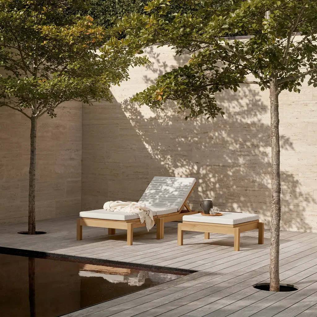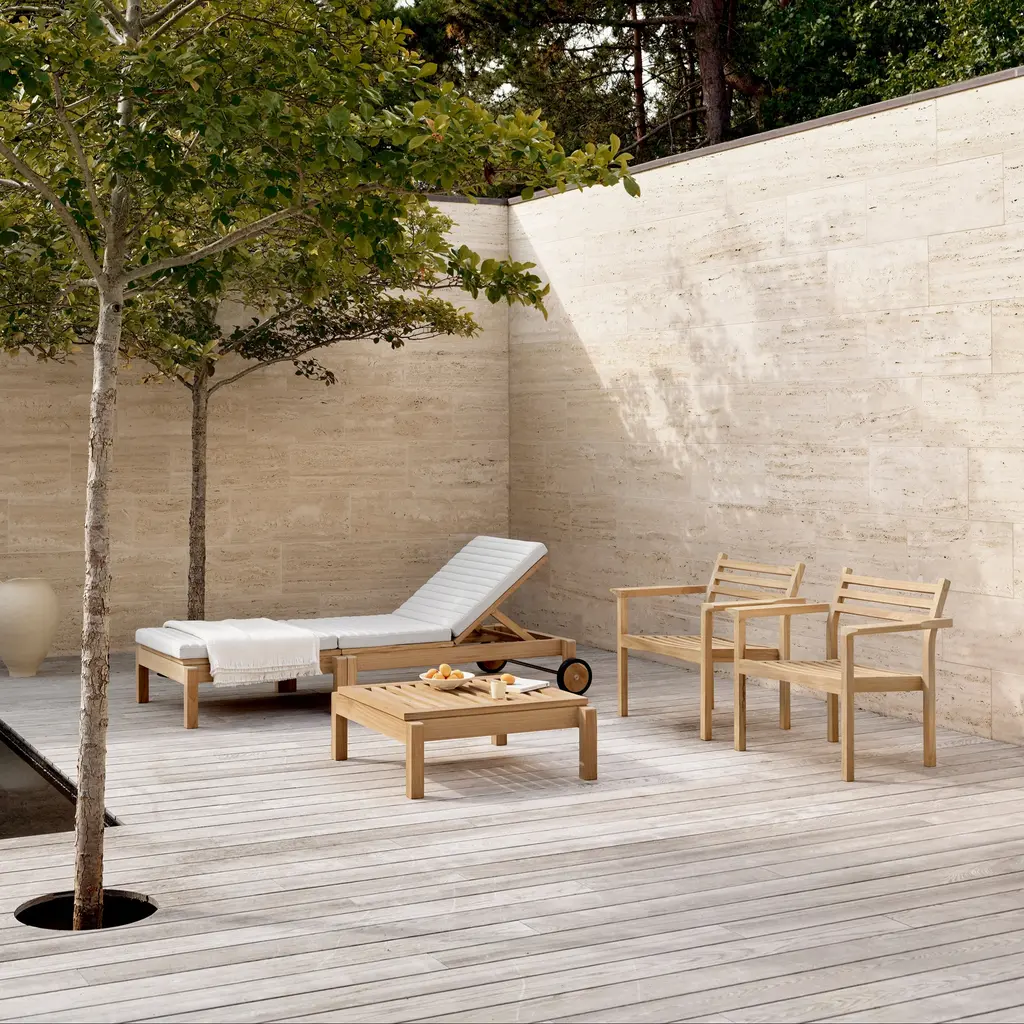 Experience luxurious relaxation with the AH Outdoor Lounger from Carl Hansen and Son. Designed by Alfred Homann in 2022, this lounger boasts a perfect balance of strict, sleek lines and soft, rounded details. Made with FSC-certified teak, it beautifully weathers over time into a silvery patina. Add an accompanying cushion for unmatched comfort and a tailored look. Highlights