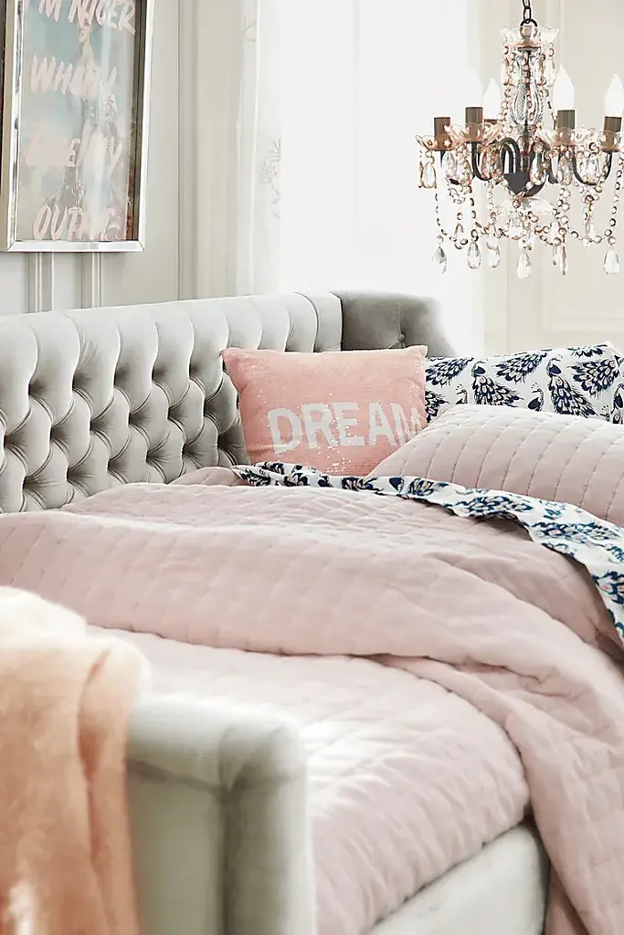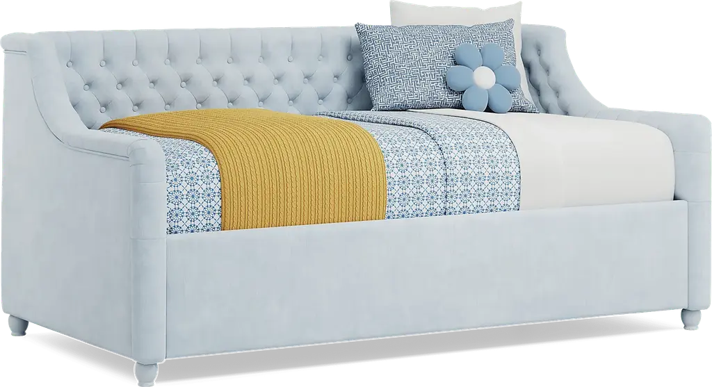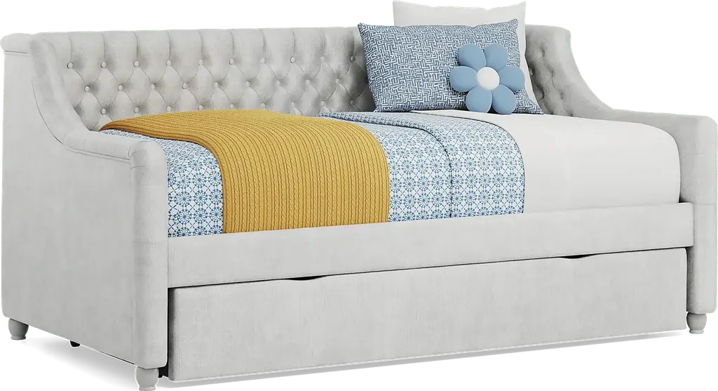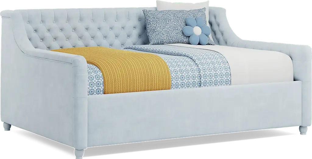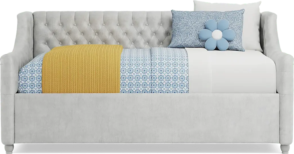 Give the guest room or your child's room the glam treatment! The ultra-chic, super versatile Alena daybed is a wonderful selection, whether you're looking for an extra seat or a bed for an overnight guest. Soft velvet upholstery in an elegant silver color is accented with stately tufting along the interior on both the inside back and sides. Gently rounded edges add plenty of panache, giving it a fashionably chic silhouette. Mattress and foundation (if required) sold separately. Bed shown is full size.