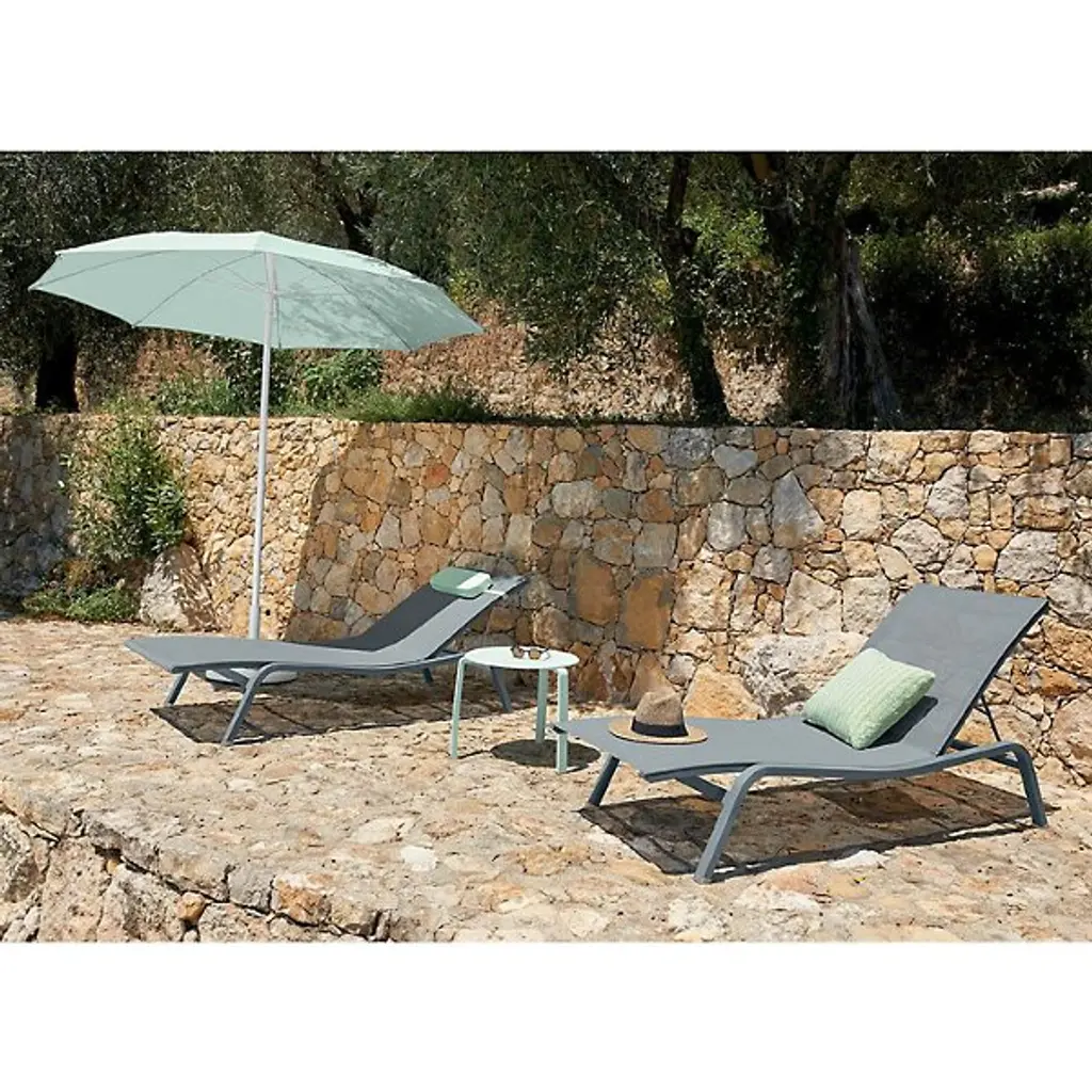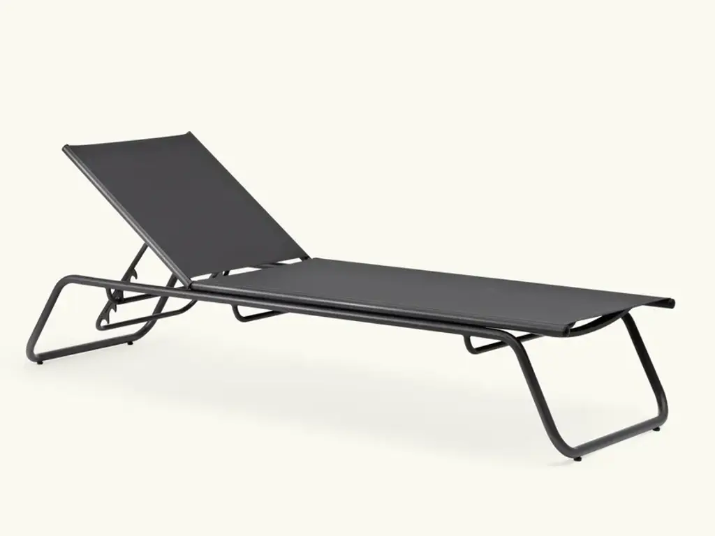 Soak up the sun. The Alize Stereo Fabric OTF Sunlounger by Fermob is the epitome of light outdoor furniture. It features a rigid yet weightless frame complemented by minimal lines, a sleek design, and ultimate comfort in the seat. You can adjust the backrest between 5 different positions and the footrest between 2 positions to find the perfect sweet spot. Set up this lounger next to the pool and relax for hours.