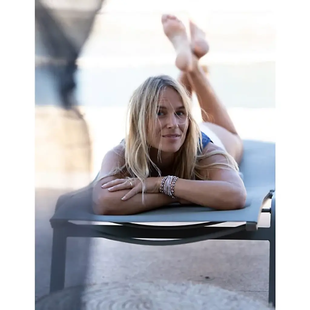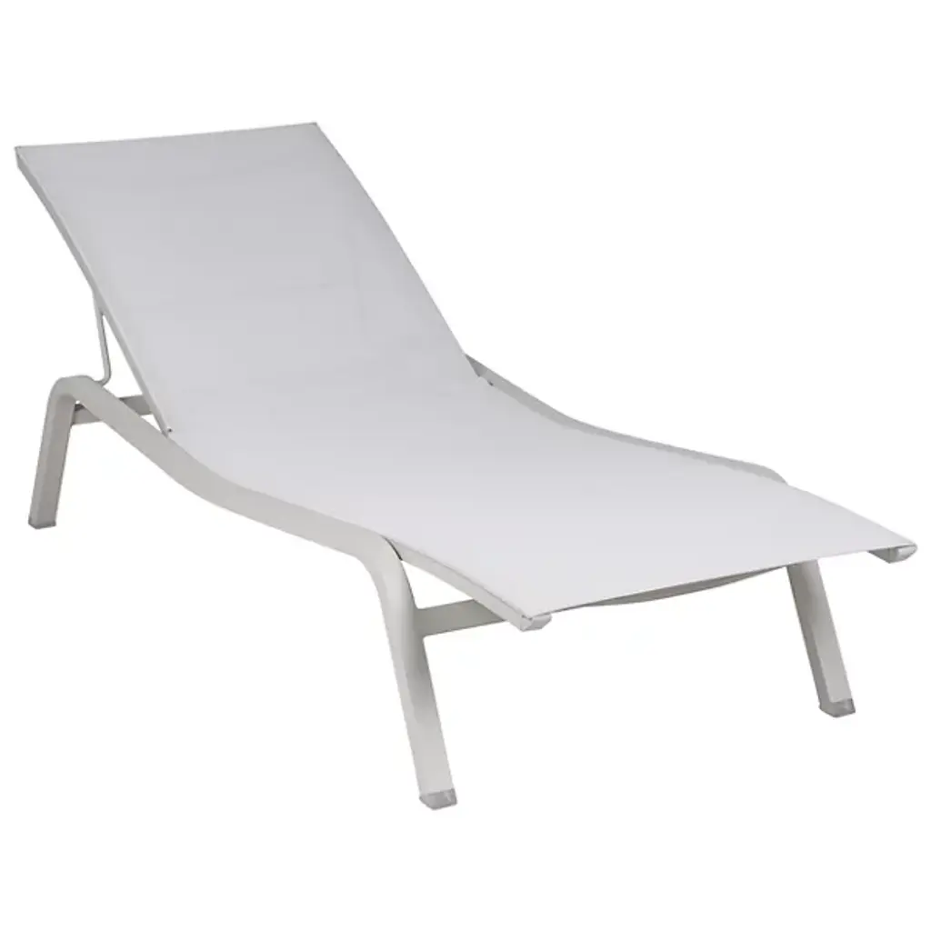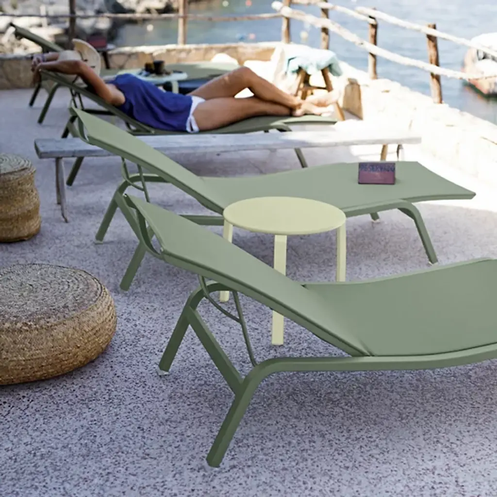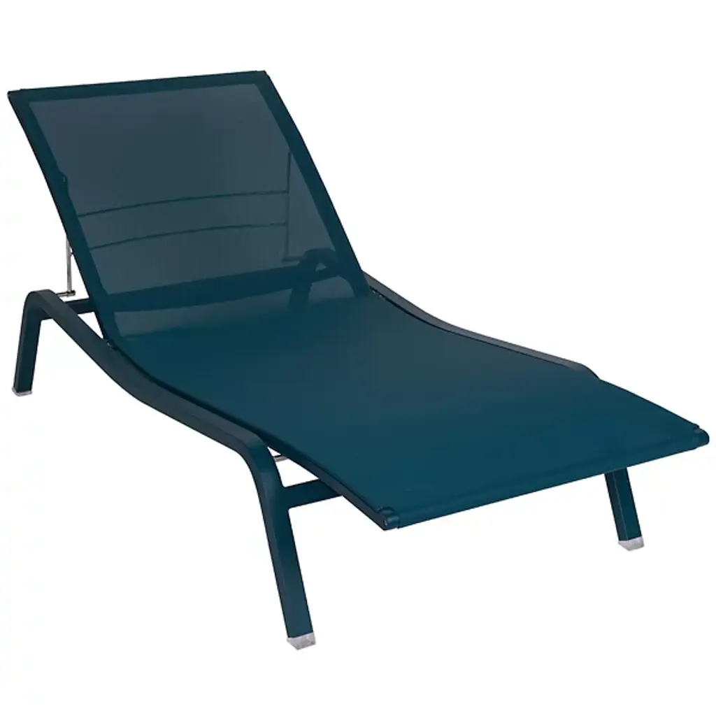 The ideal way to relax and catch some rays, in outdoor spaces large or small. The Alize XS Sun Lounger by Fermob provide all the comfort and modern style of the original, but with slimmer proportions. It features the sleek signature curves of the Alize collection, made out of lightweight and durable Aluminum. Stretched down the entire length is the breathable and tear-proof Outdoor Technical Fabric. Adjust the headrest as needed for maximum comfort. Then, when the lounging is done for the day or the season, you can stack this lounger up and out of the way (up to 15 high).
