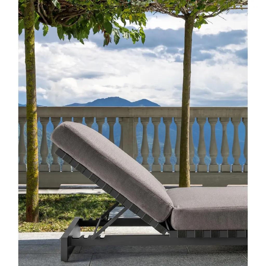The Argo Alu sunbed is characterized by comfortable padded cushions and a solid aluminum frame covered with elastic belts, perfectly in line with the other elements of the collection. The cushions, upholstered with removable and weatherproof covers, along with the high quality of the fabrics, available in a wide variety of colors, and the reclining backrest make the Argo Alu sunbed perfect to enjoy moments of relaxation in the open air.