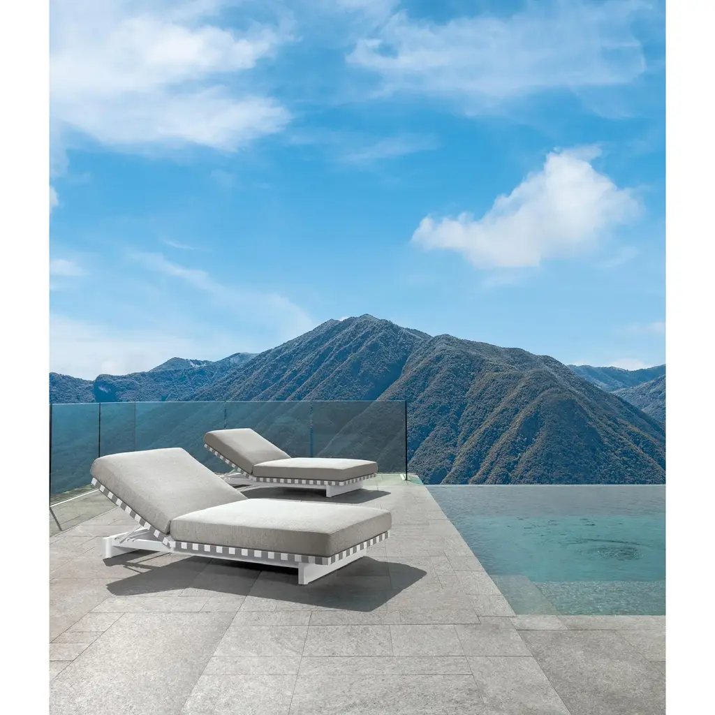 The Argo Alu sunbed is characterized by comfortable padded cushions and a solid aluminum frame covered with elastic belts, perfectly in line with the other elements of the collection. The cushions, upholstered with removable and weatherproof covers, along with the high quality of the fabrics, available in a wide variety of colors, and the reclining backrest make the Argo Alu sunbed perfect to enjoy moments of relaxation in the open air.