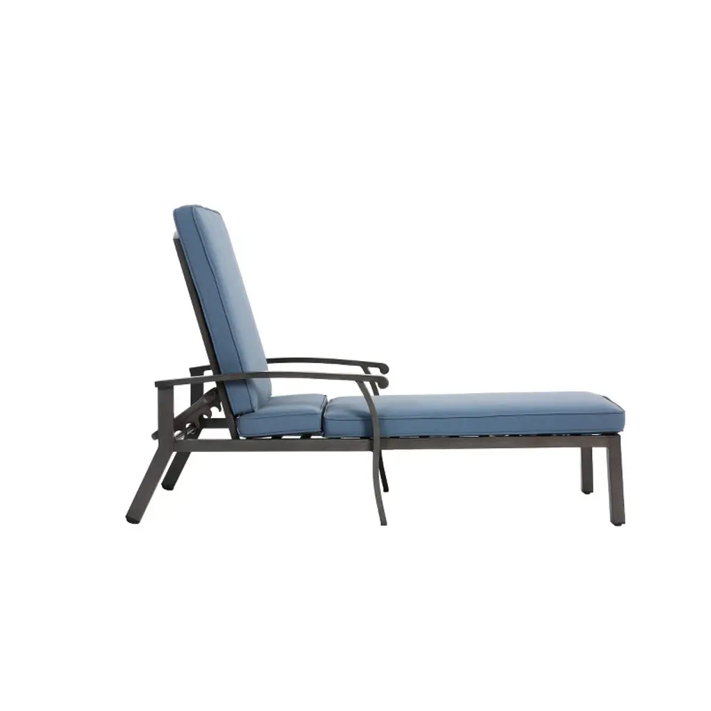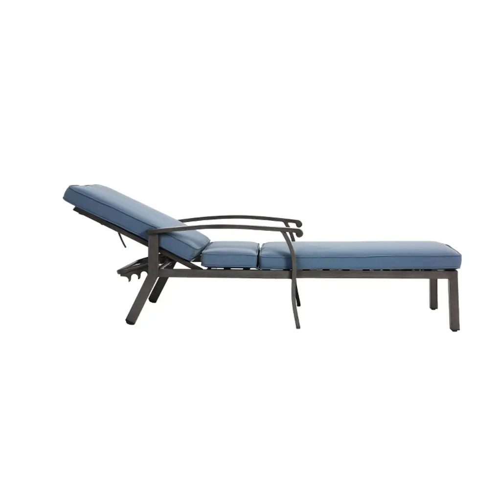 Aluminum Cast Lounge Chair With Adjustable Back And Rolling Wheel,outdoor Chaise Lounge Chair With Cross Weave,patio Lounger With Blue Cushion-koiai