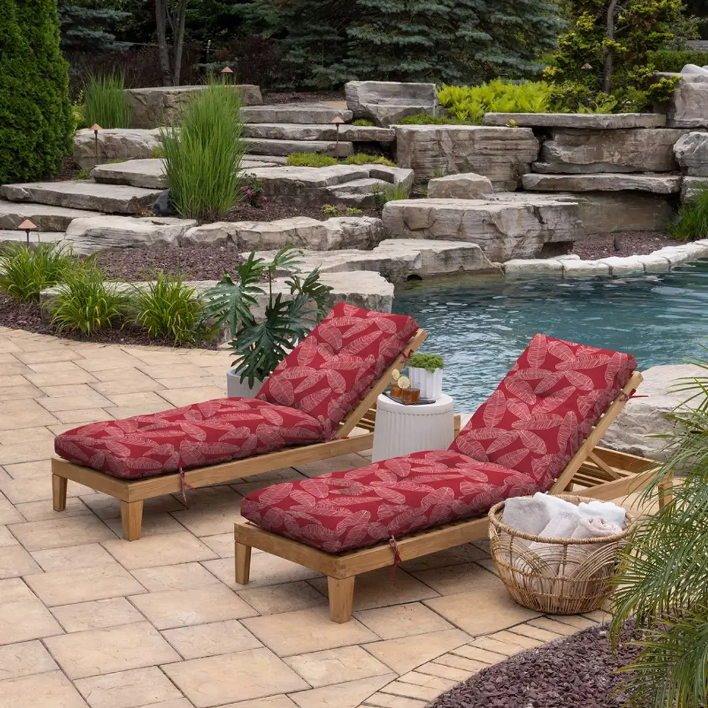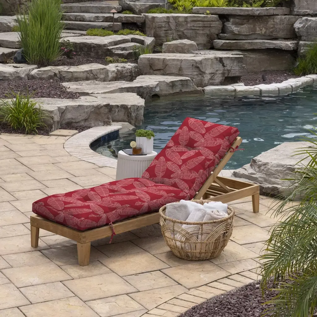 Arden Outdoor Plush Modern Tufted Chaise Cushion, 76 X 22, Water Repellent, Fade Resistant, Tufted Cushion For Chaise Lounger 76 X 22, Red Leaf Palm
