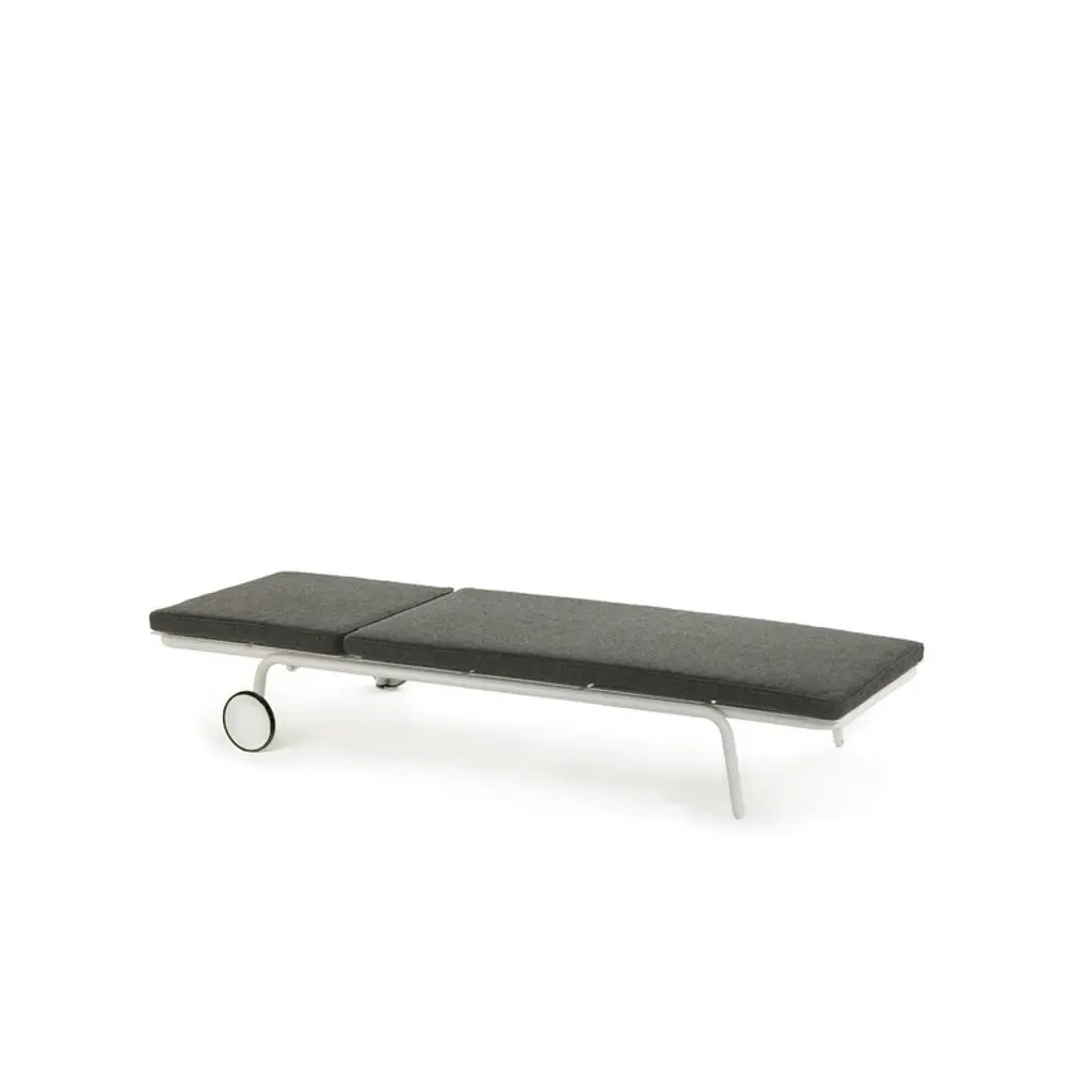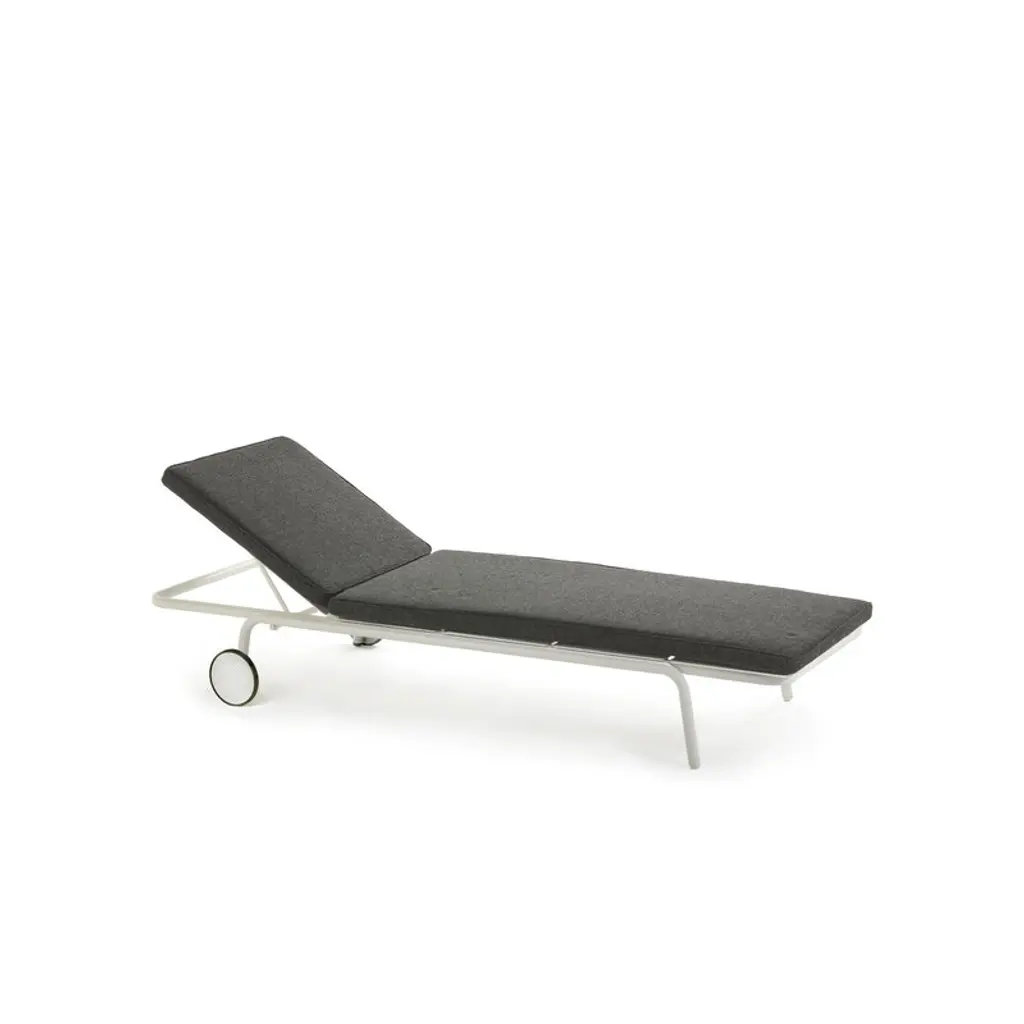This cushion is designed for the Serax August sun lounger. Perfect for outdoor use, the cushion is filled with Quickdry foam and upholstered with Dacron fabric, commonly used as a sail material. The cushion has leather straps that attach to the sunbed so that it stays firmly in place and you can focus on enjoying the sun.