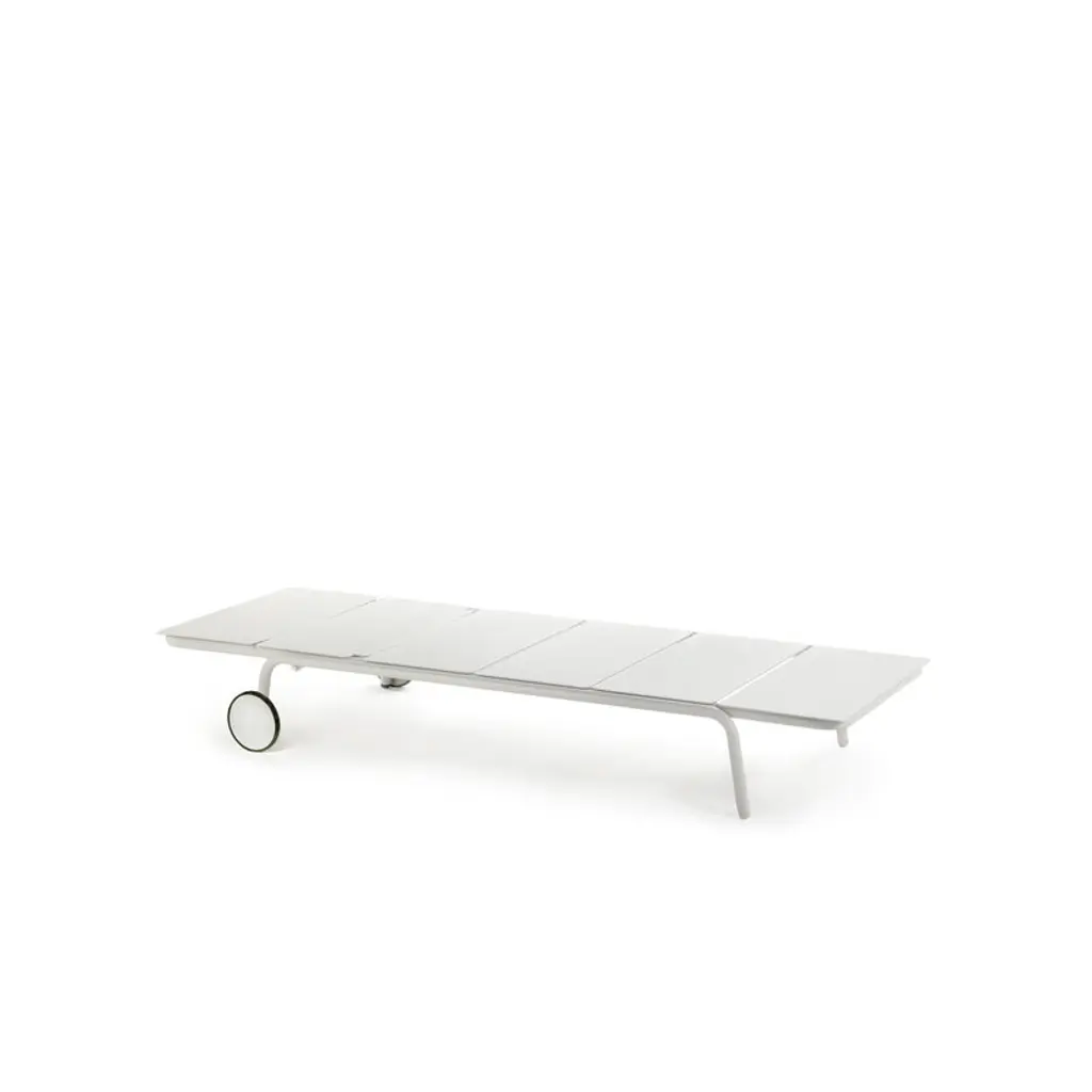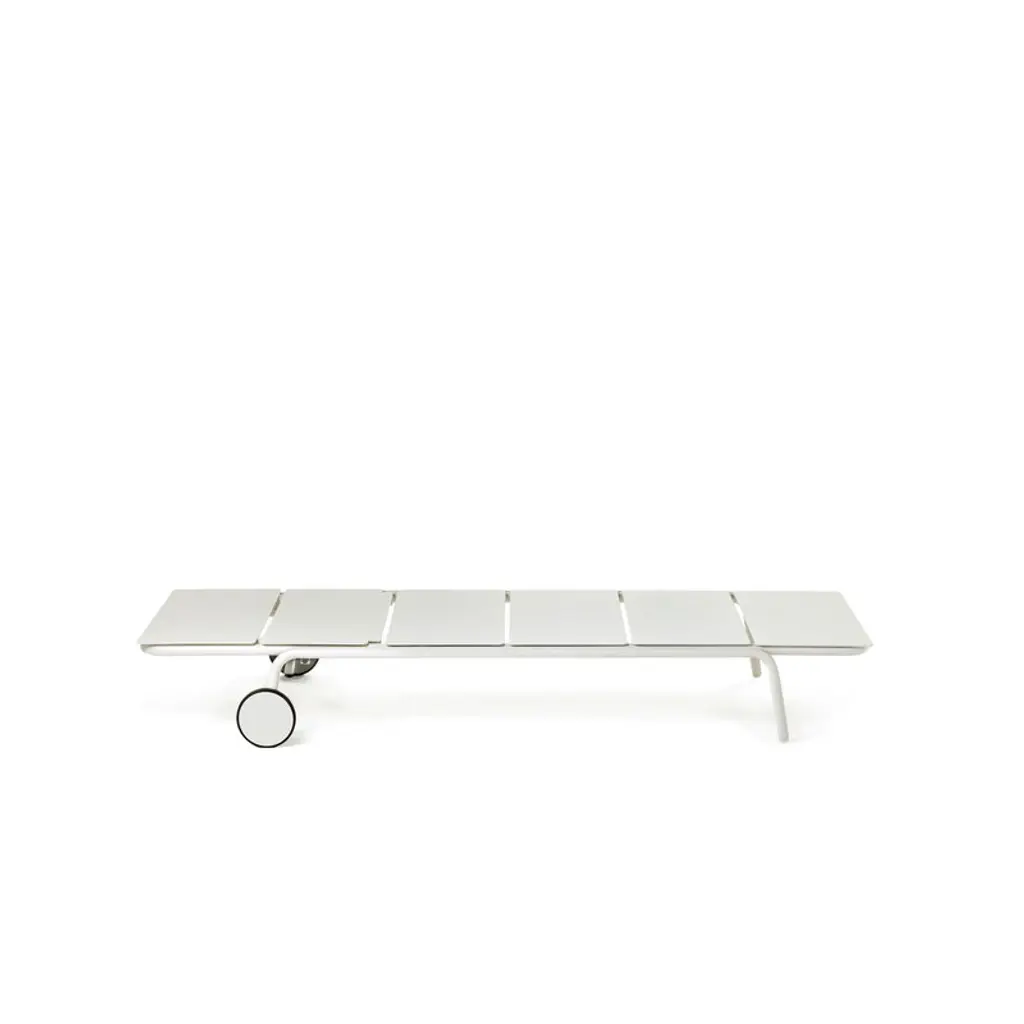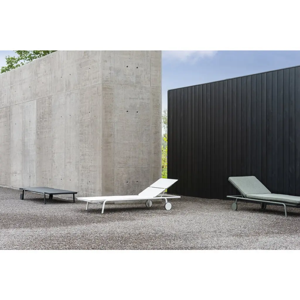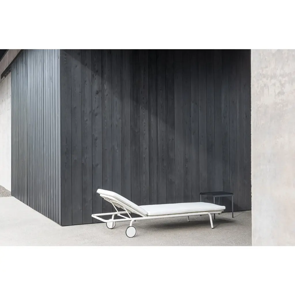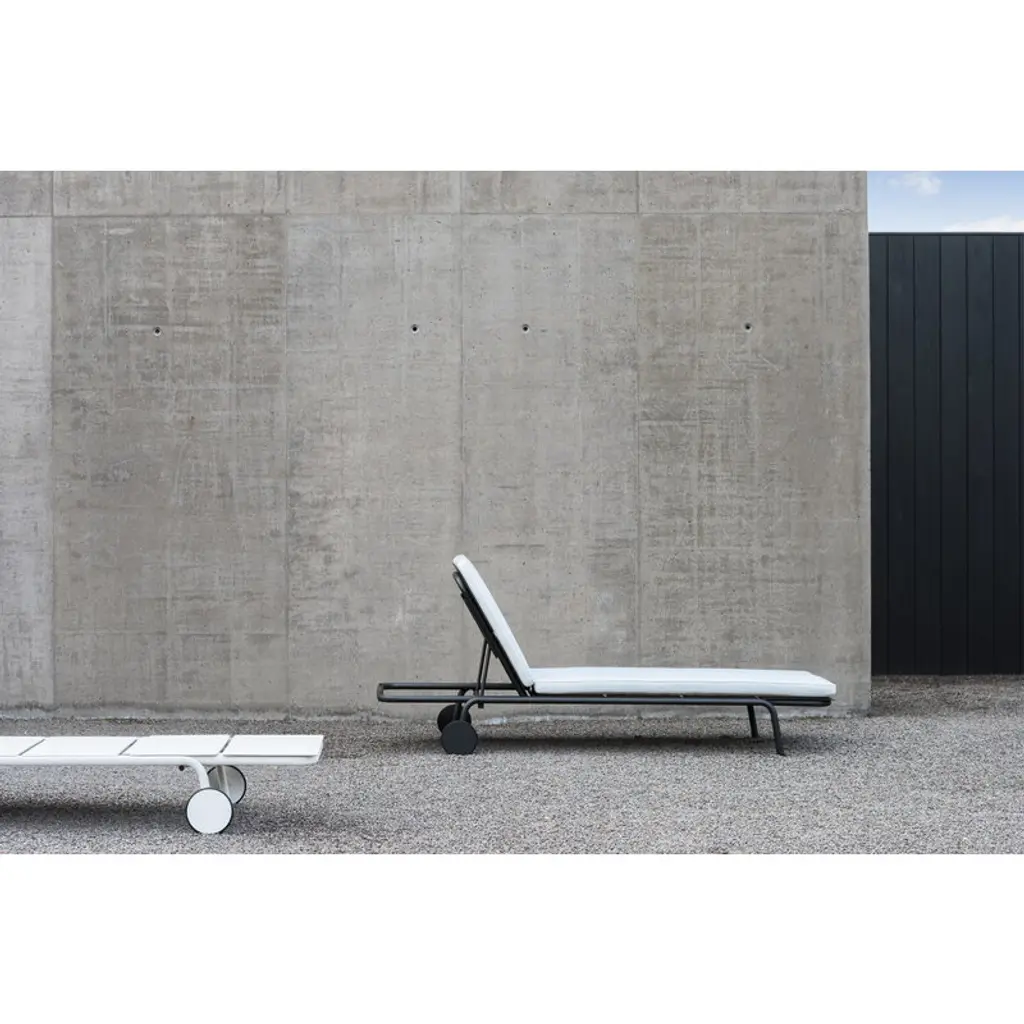 The August sun lounger by Serax is the perfect addition to any outdoor lounge area. The minimalist sunbed is equipped with wheels and an adjustable backrest that allow you to enjoy the rays in your preferred spot, in your preferred position. The August outdoor collection by Serax, designed by Vincent Van Duysen, was originally designed to be used on the terrace of a hotel in Antwerp. The hotel building used to be the monastery of a military hospital, and this is where the inspiration for August came from – the ascetic way of life of monks. The beautifully minimalistic August collection has been stripped of anything unnecessary, leaving only the essential. Additionally, the products in the August collection are slightly wider and lower, in order to bring additional comfort without compromising on the simplicity of the design.
