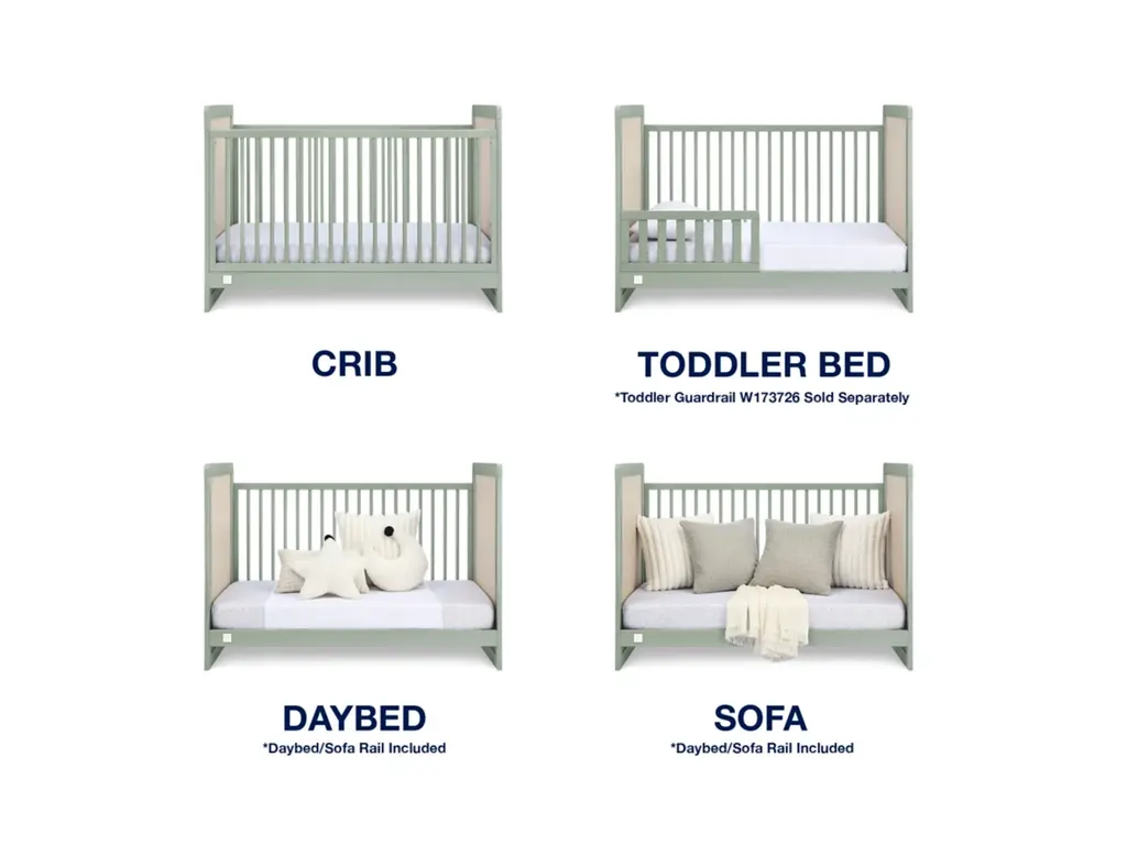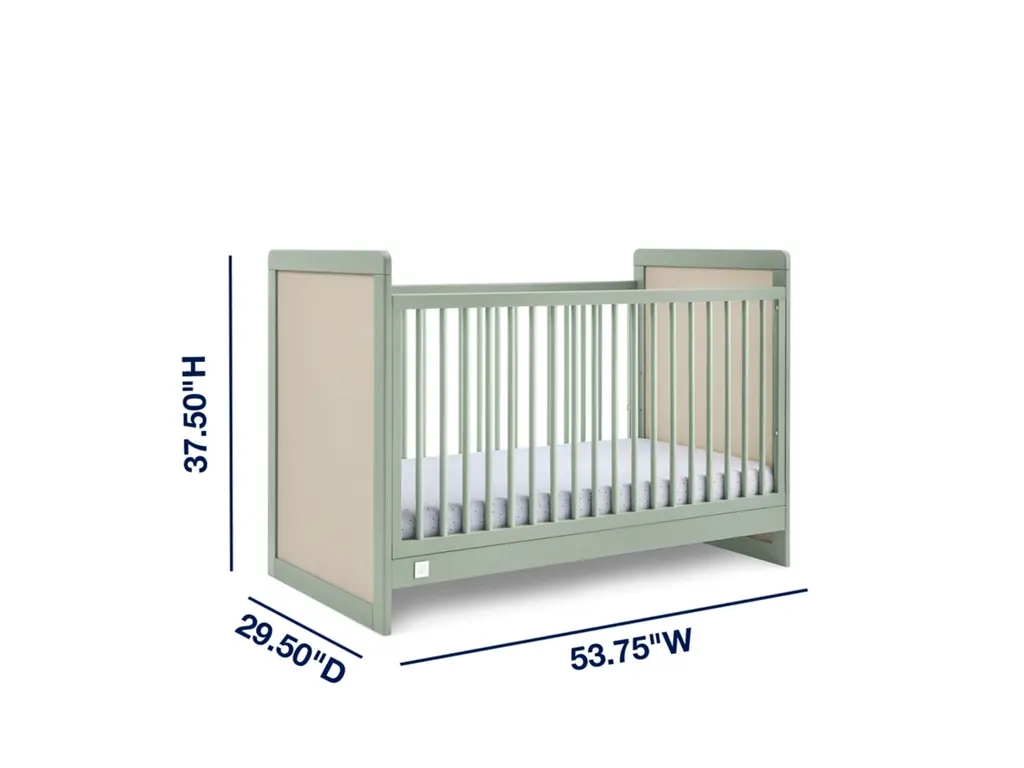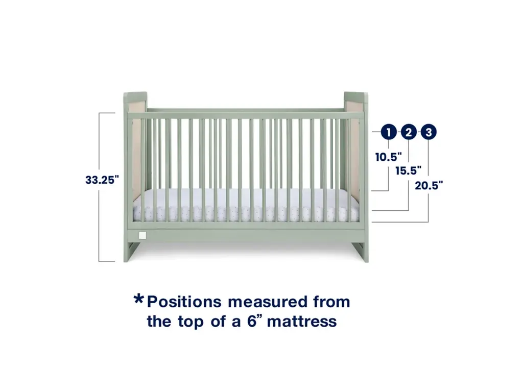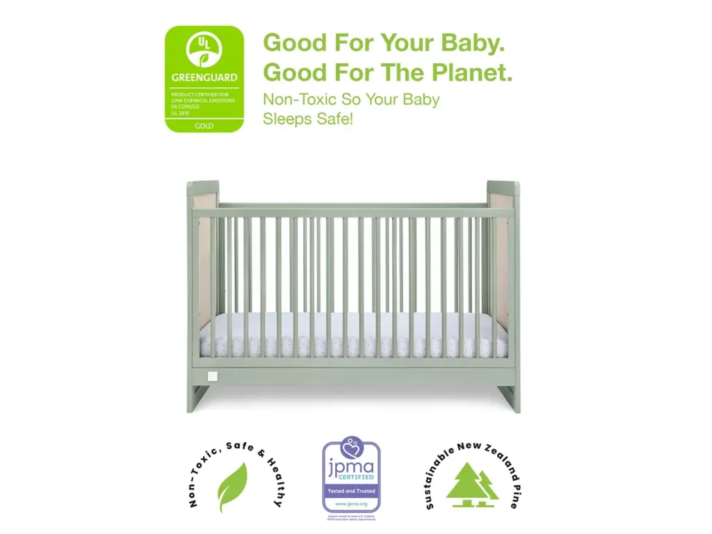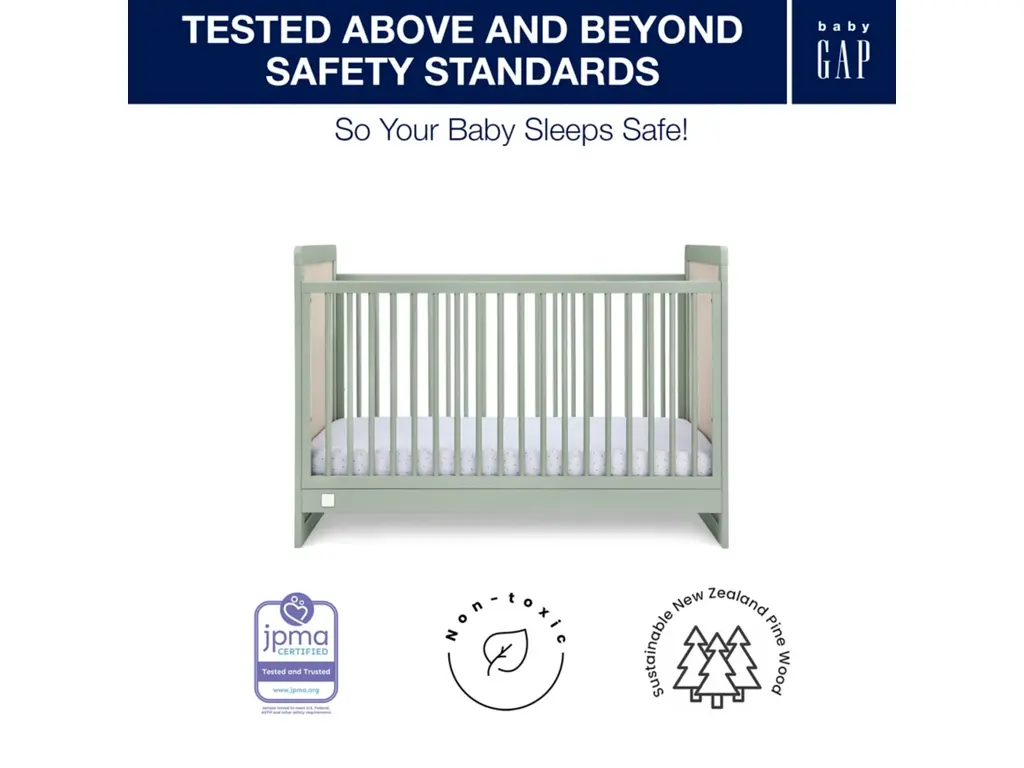 The babyGap by Delta Children Liam 4-in-1 Convertible Crib welcomes modern, laid-back style into the nursery. Textured panels on each end add depth and dimension while the adaptable design ensures it grows with your little one - convert the crib into toddler bed, daybed or sofa to extend its use (Toddler Guardrail sold separately). Plus, it's GREENGUARD Gold Certified, which means it's built to contribute to cleaner air for a healthy home. Available in Sage Green/Natural, Black/Natural and Bianca White/Natural. Easily mix, match, and layer with other items from the babyGap by Delta Children Collection.