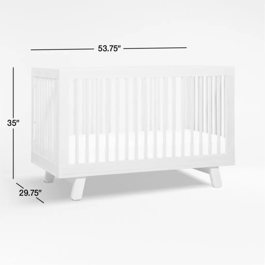 We love the modern mid-century design vibe of this bestselling Babyletto Hudson 3-in-1 Convertible Cribfrom the stylish round spindles to the angled stance of the legs. And the solid New Zealand pine craftsmanship finished in a light, natural wash makes a gorgeous statement in any nursery, perfect for pairing with neutral or colorful crib bedding. Designed for newborns to 4-year-olds, the Hudson Crib easily transitions from crib to toddler bed to daybed with the included toddler rail and conversion kit. Coordinates with any of our Crib Mattresses.Learn how to choose a crib.