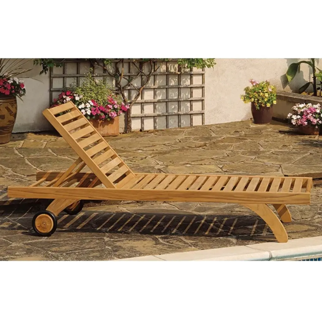 Barlow Tyrie Capri Teak Chaise Lounger - Standard W/ Wheels
