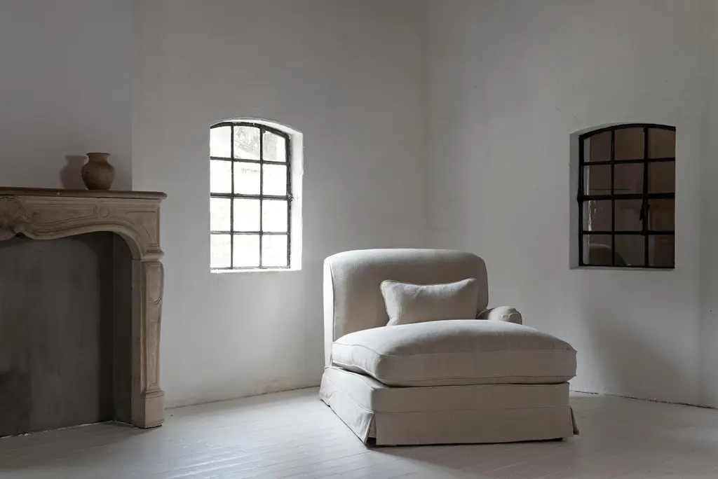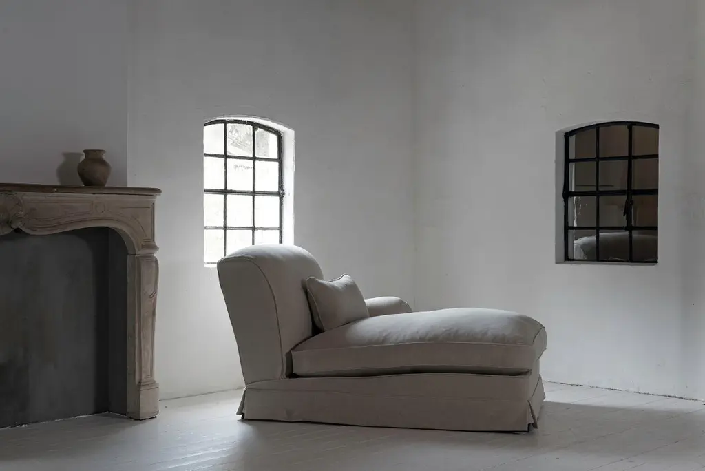 Introducing the home collection. An iconic, unobtrusive design. A small selection of timeless Flemish designs made by hand for us in a small third generation workshop in Belgium. Made from a solid beech frame, oak feet, solid steel springs and other high quality components. Made to last. Available in any bespoke size.Can be made with the very neat slipcover in our beautiful House Linen or in any linen by Libeco, C& C Milano, Pierre Frey or De Le Cuona, all of which we stock. We can also produce the slipcover with a more loose fit if required.