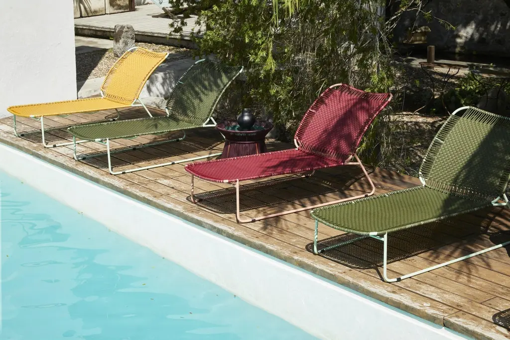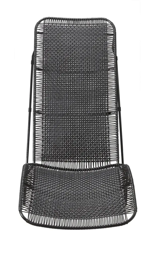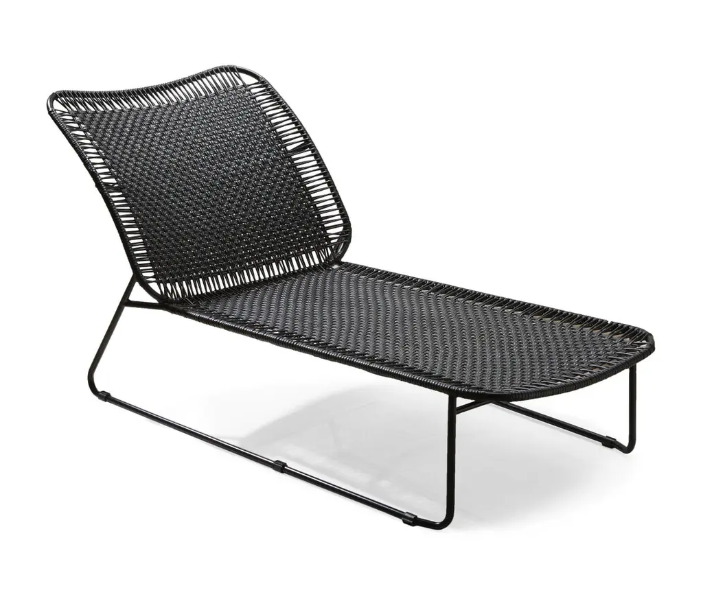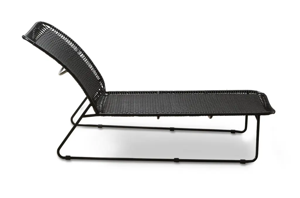 Black Cielo daybed by Sebastian HerknerDimensions: 172 x 78 x 83 cmMaterials: Recycled plastic, metalMade from recycled plastic strings and galvanized, powder-coated steel, the bed is available in five colorways: mint/ black - black-black- oliv/ menta - purple/ carne - honey/ menta.Stackable to 3 items.