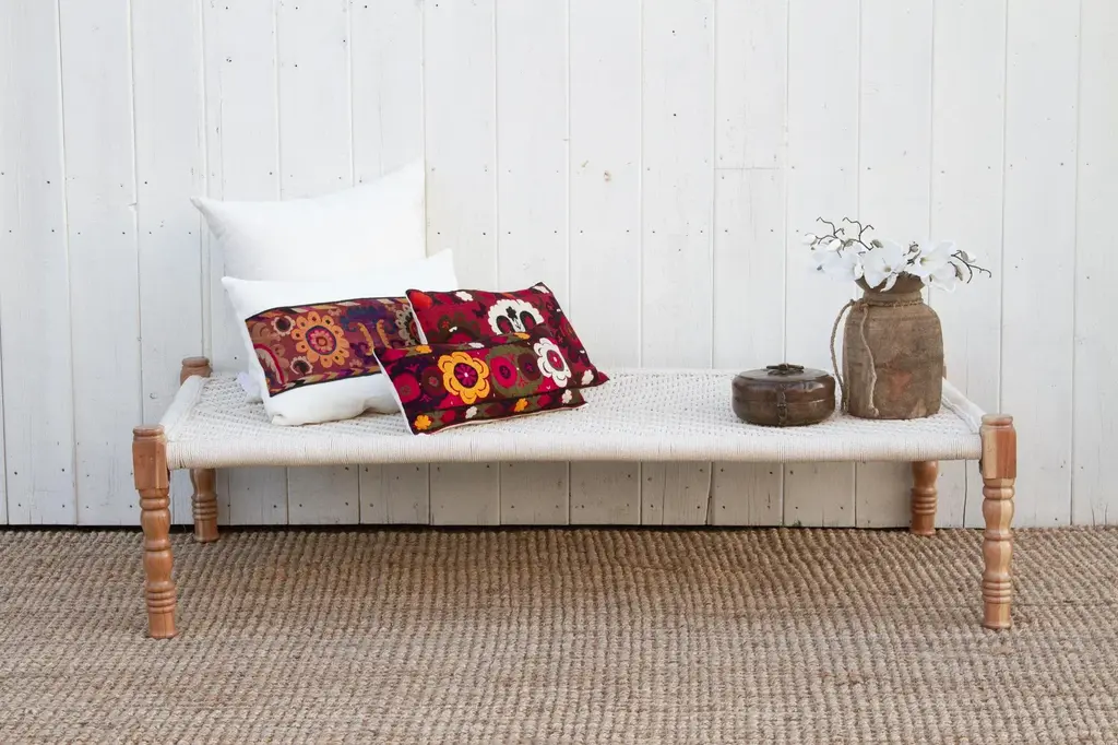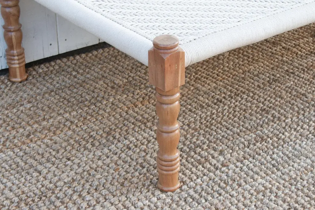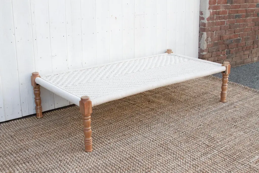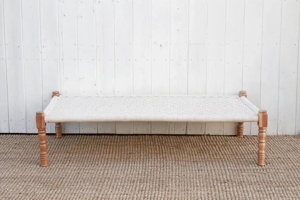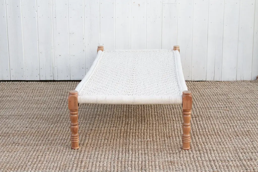 This captivating coffee table, inspired by the traditional Indian daybed, effortlessly blends global intrigue with modern design. Handcrafted with a beautifully woven top, it exudes a clean, organic aesthetic that seamlessly complements both boho and farmhouse décor. Imagine the exquisite craftsmanship of the woven top, showcasing the rich heritage and adding a unique textural element to your space. This modern interpretation transcends tradition, offering a sleek and contemporary silhouette that complements modern interiors. Unbound versatility allows this piece to shine in your living room as a stylish coffee table or grace your entryway as a conversation starter, adding a touch of understated elegance to any setting. Please note: While the design draws inspiration from the daybed concept, its delicate construction is not intended for use as a seating surface. **Please bear in mind that colors of products shown may vary slightly from their original color due to monitor display settings or photography studio lighting.