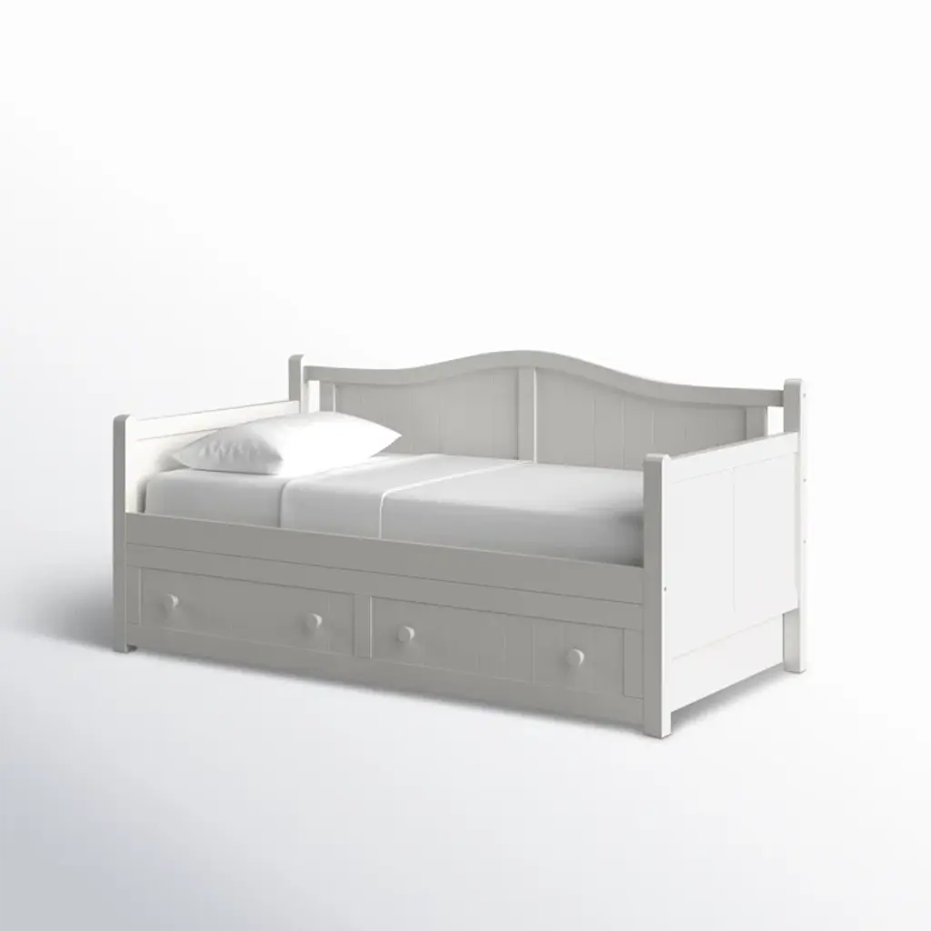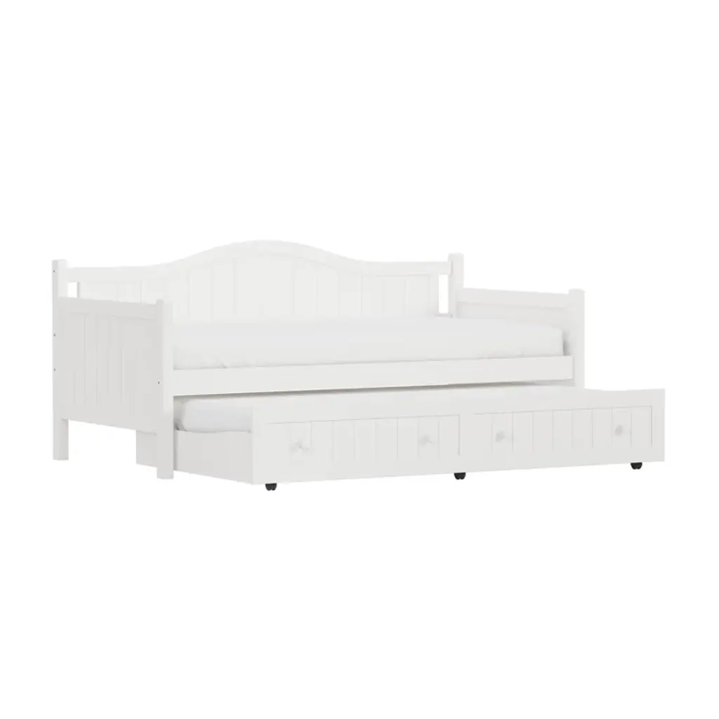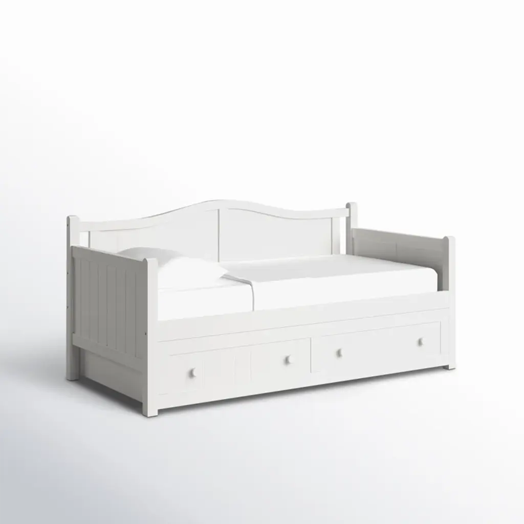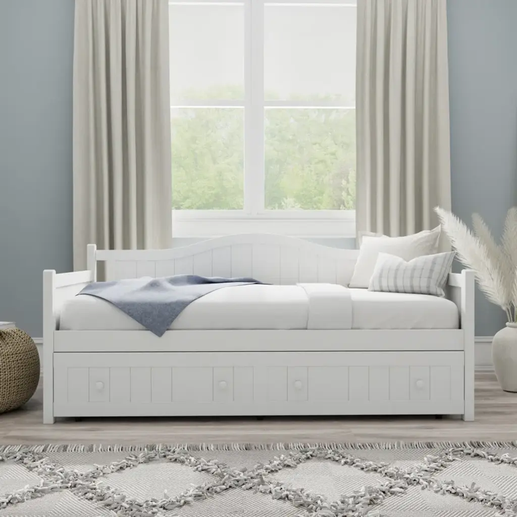 This well-made daybed has thoughtful details that make it an instant classic in any living room ensemble, especially if you often have overnight guests. Crafted from a mix of solid and manufactured wood, it features an arched back and sides accented by inset paneling as well as a neutral solid finish that adapts to any space. We love how this bedroom furniture piece includes a bed that lets you take it from sofa by day to a restful nighttime retreat in a cinch.