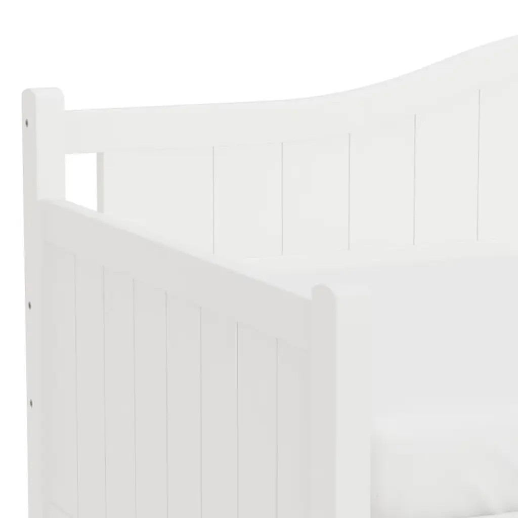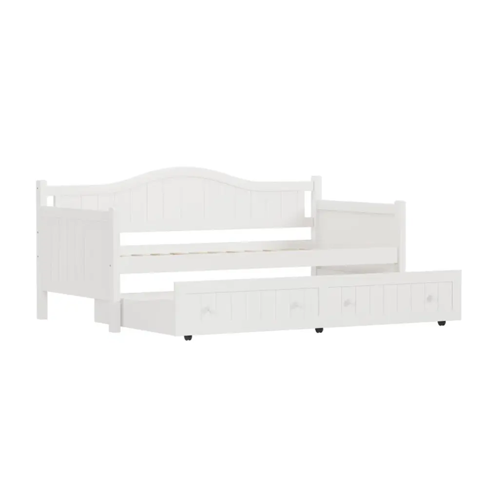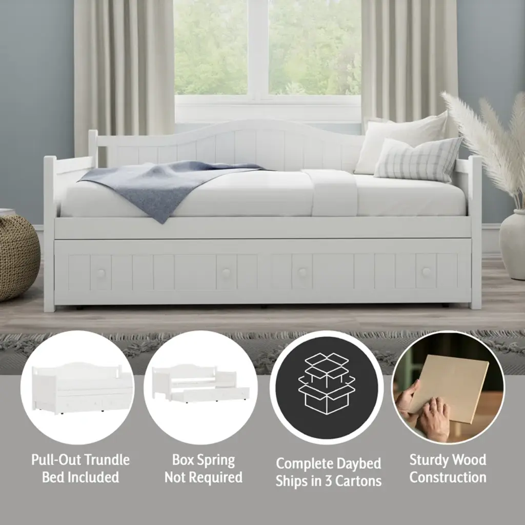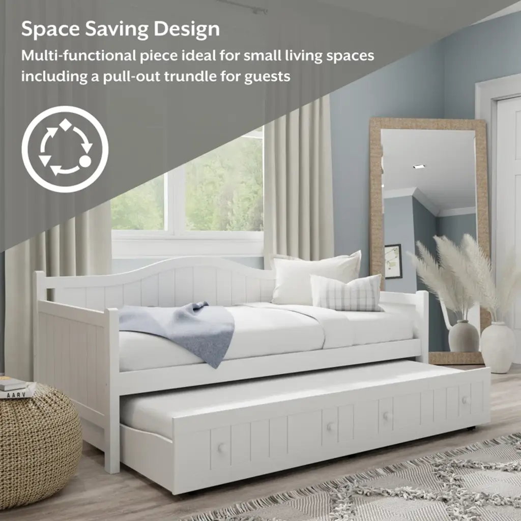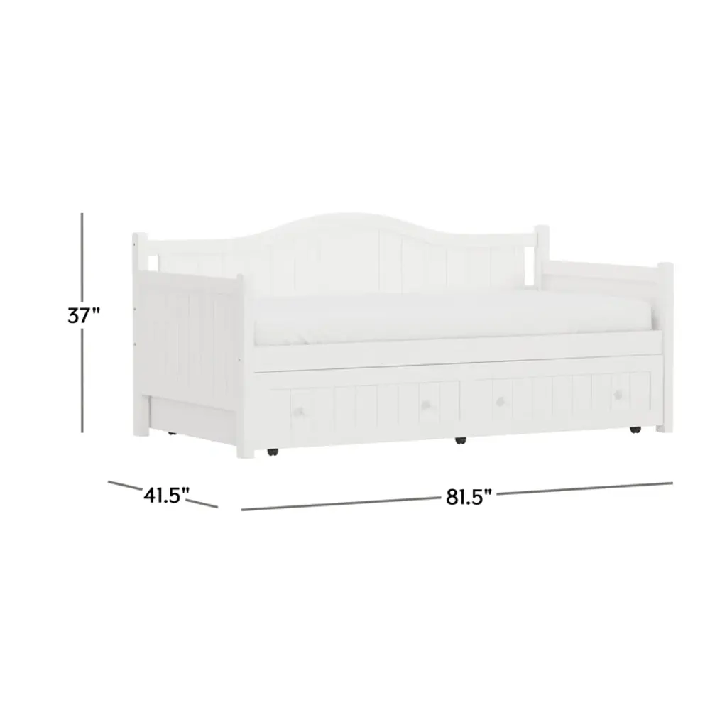 This well-made daybed has thoughtful details that make it an instant classic in any living room ensemble, especially if you often have overnight guests. Crafted from a mix of solid and manufactured wood, it features an arched back and sides accented by inset paneling as well as a neutral solid finish that adapts to any space. We love how this bedroom furniture piece includes a bed that lets you take it from sofa by day to a restful nighttime retreat in a cinch.