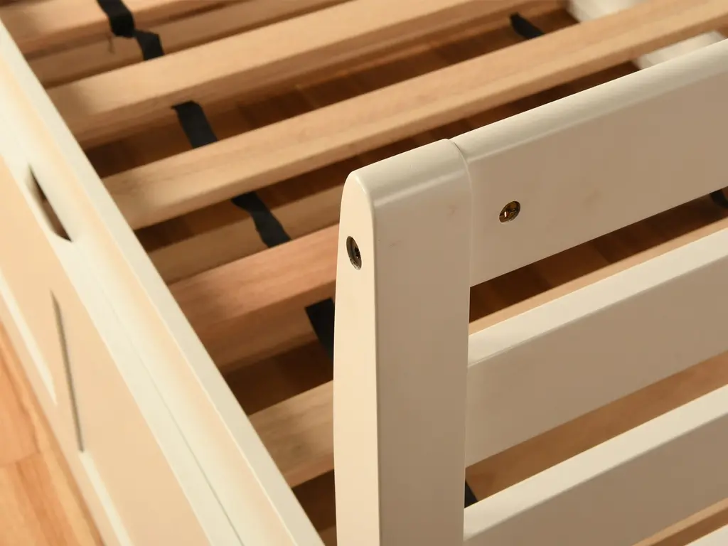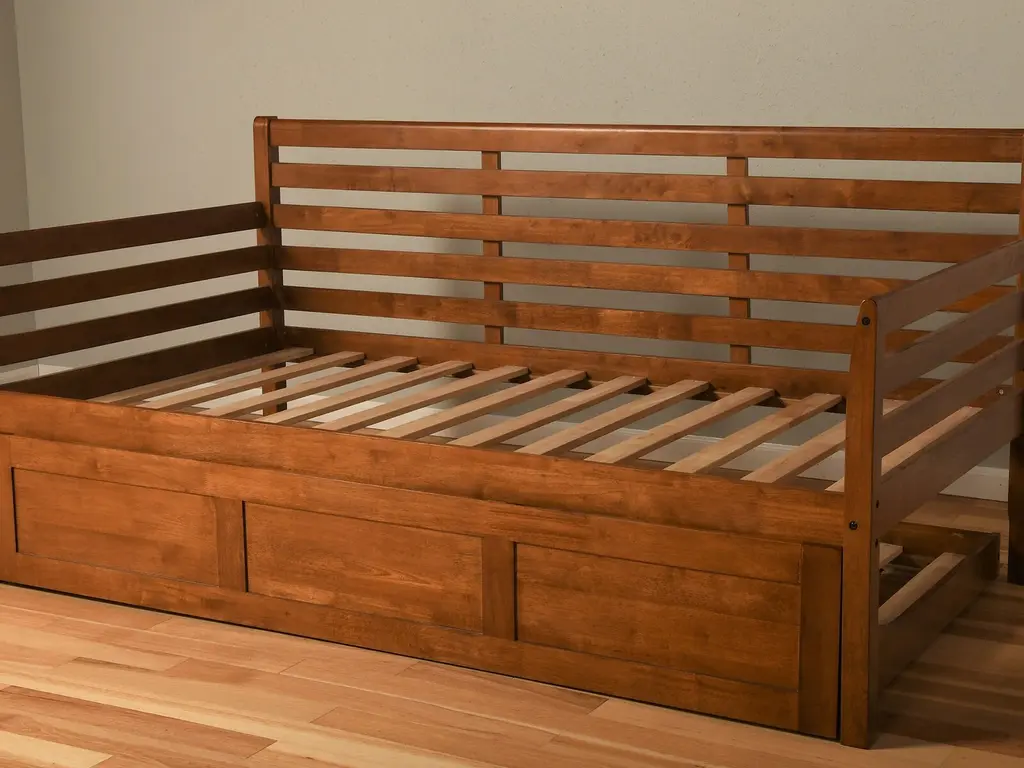 The Boho Daybed boasts clean lines and attractive angles. The trundle feature has sturdy casters that make the trundle easy to operate. The Barbados Medium Brown, Rustic Walnut, and White finishes will blend in with many color schemes in your home. Whether you’re using it every day, or just on occasion, this daybed will hold up to your lifestyle.