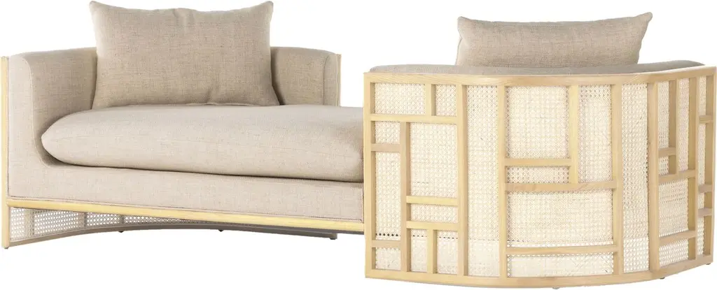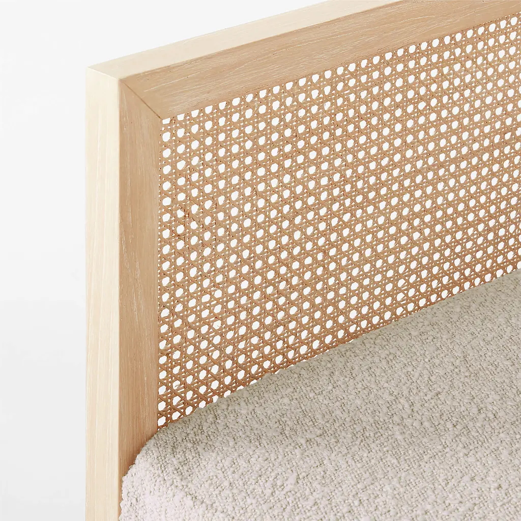 Boho Ivory Boucle and Natural Rattan Daybed Twin