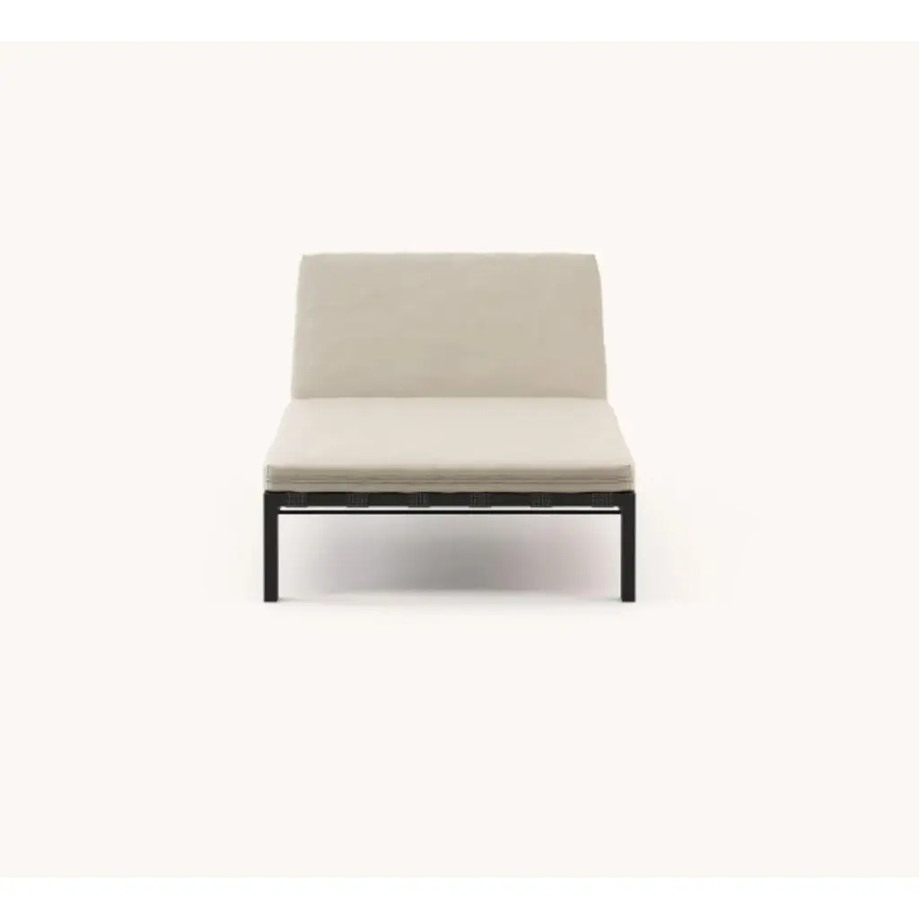 Bondi lounger by DomkapaMaterials: black texturized steel, fabric (Nile Ivory).Dimensions: W 200 x D 81 x H 31.5 cm.Also available in different materials.Enjoy your outdoor space with Bondi Lounger and your summers will never be the same. With an enduring structure and an organic shape, Bondi will bring an extra dose of comfort to your lounge space.This structure of black texturized steel makes sure you have all the support you need while a mix of textures and materials embodies a perfect cosiness.Domkapa holds a tremendous passion for detailed stitching, presenting several similarities to the haute-couture philosophy focused on the value of a “made by hand”. Based in Portugal, Domkapa was founded in 2009 as a Private Label. The long and fruitful path, full of experience and achievements inspired the brand’s new identity and independence, in 2017.Domkapa challenges its team to create the perfect daily meeting between design and comfort in each piece of the brand’s collections. Our design team works side by side with the production, and this organic synergy allows the creation of innovative designs.
