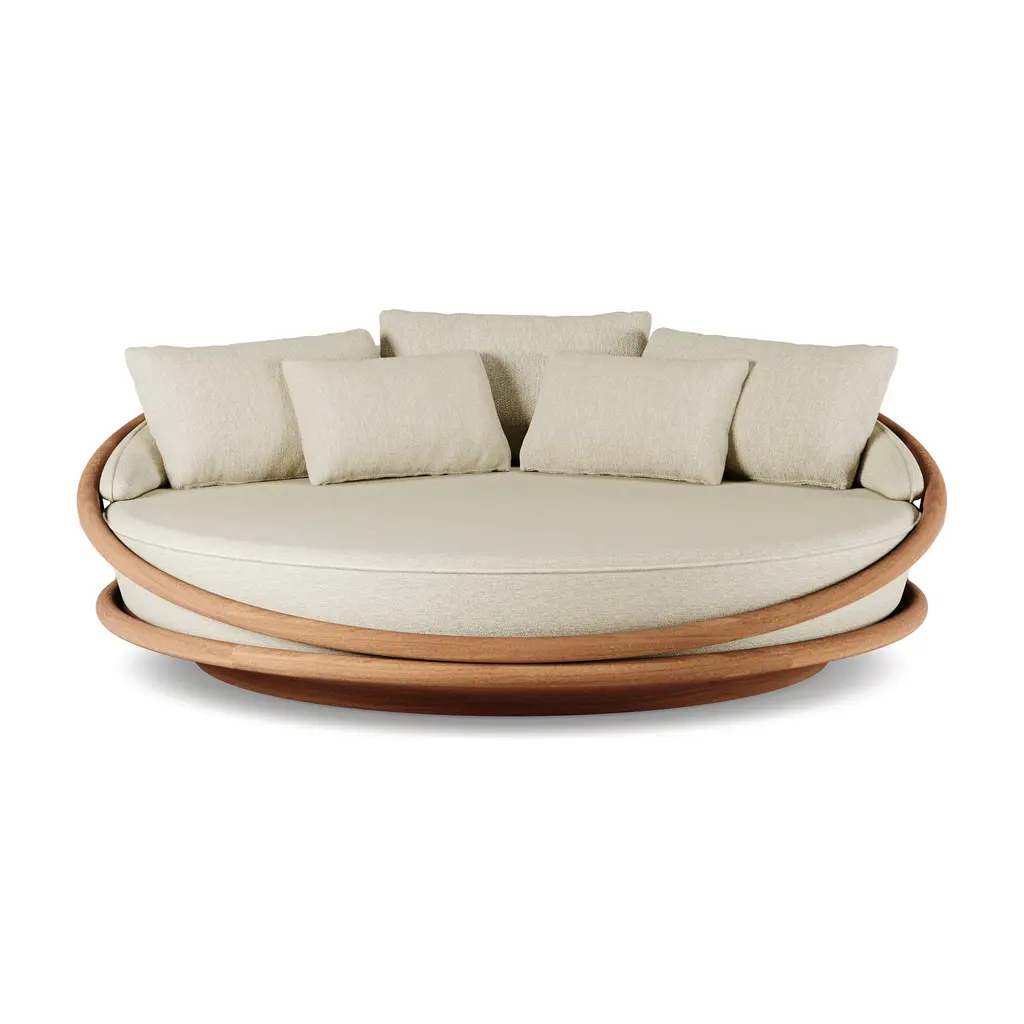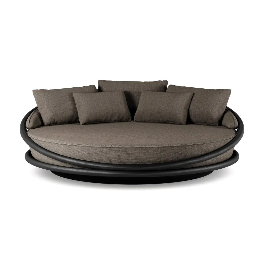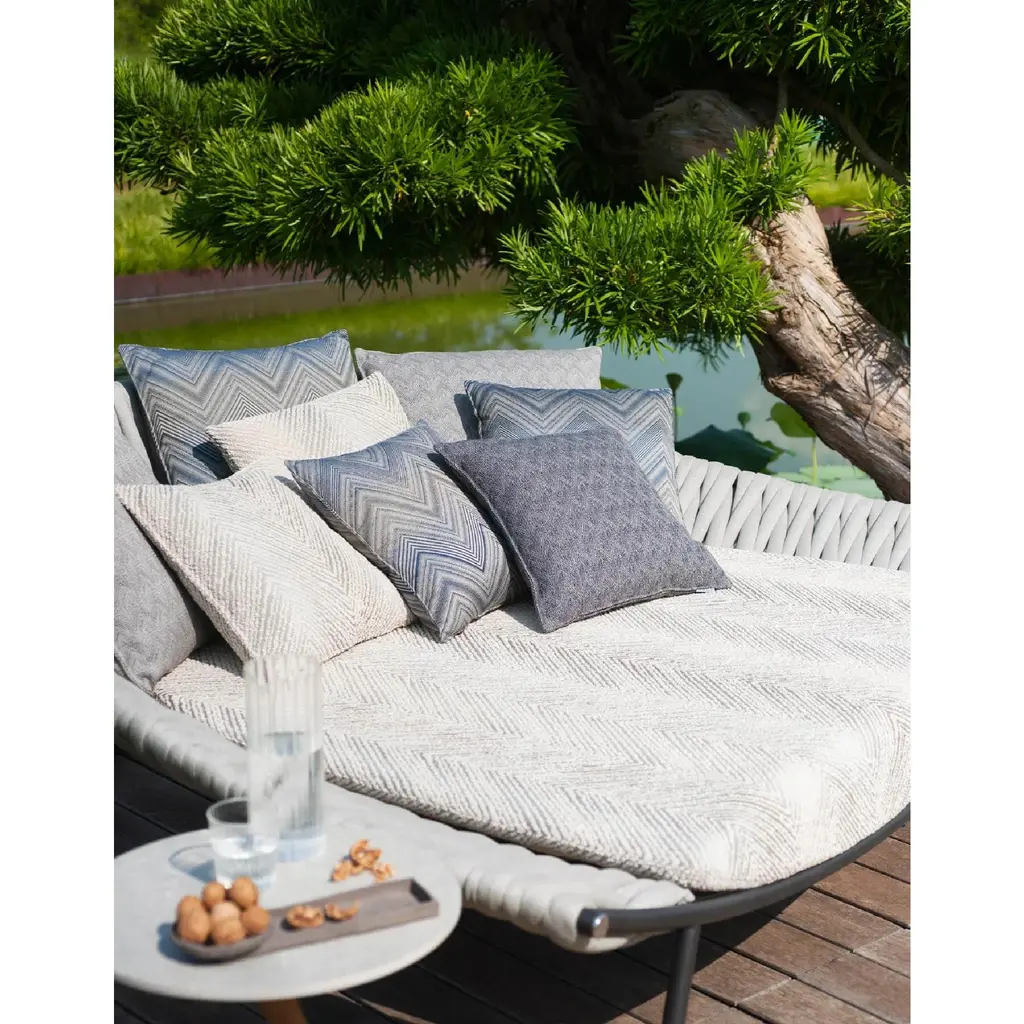 Introducing the ARENA braided outdoor daybed by RODA - a luxurious blend of garden lounger and designer outdoor sofa. Designed by Gordon Guillaumier, this "eye catcher" boasts both stunning visuals and unbeatable comfort. Perfect for relaxing, sunbathing, or reading, it's a unique and versatile addition to any garden or poolside setting.