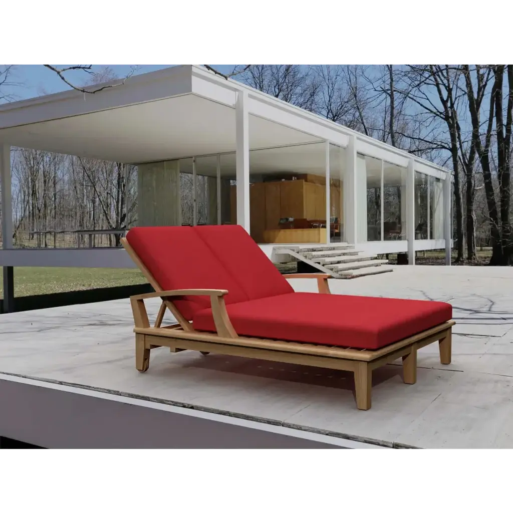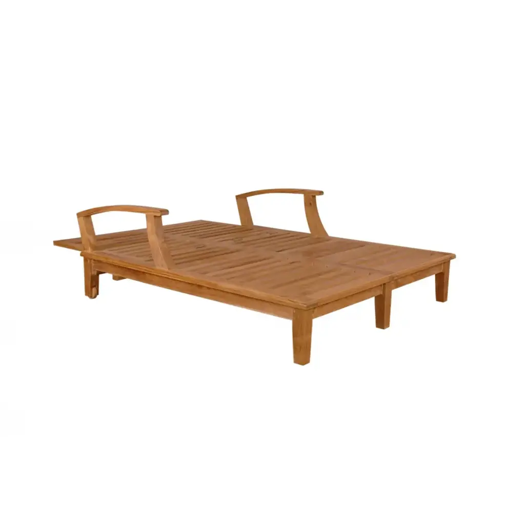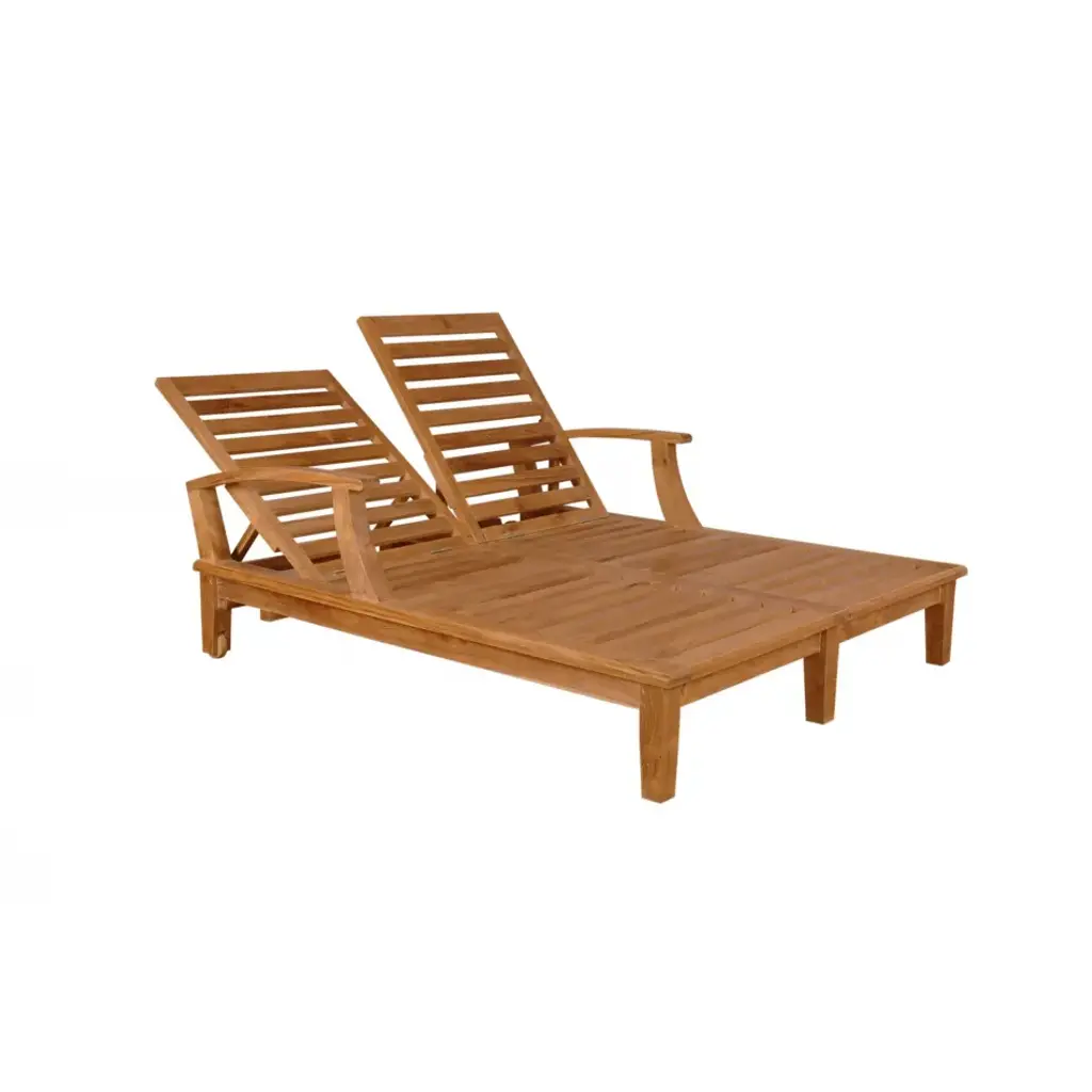 A spacious and bulky Sun Lounger for the pool and patio, the Brianna Double Sun Lounger is the perfect lounger under the sun for two. Perfect for poolside reading in the sun, this Lounger adjusts up to four individual positions, including completely flat. For added lounging comfort add cushions from Sunbrella All-Weather Cushions; saturated with UV stable pigments that resist color fade, water, mold and mildew. With its solid teak wheels, it can be easily moved for storage in and out of the sun. Made from genuine teak wood sanded smooth to the touch, it is the perfect material for weathering the outdoors through rain, hail, or shine.