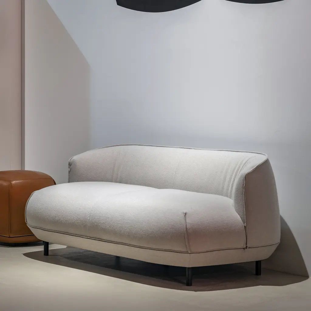 Inspired by the archipelago in the Adriatic Sea of the same name, Brioni is a collection of seats comprising lounge armchairs, daybeds and poufs with a soft and full appearance. Initially designed for outdoor use, the six items in the Brioni collection have been redesigned by LucidiPevere for use in homes: the entire surface of the seat is now covered in fabric or leather, without the dark lower band that prevented contact with the ground. It has a zip, an aesthetic and functional detail, like the previous version, as well as soft polyester padding with plastic slats. Light and easy to move, the poufs are perfect when positioned next to the sofa, whereas the armchairs and daybeds are comfortable and versatile seats that invite you to relax.