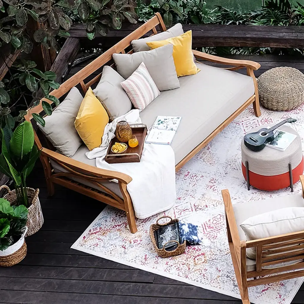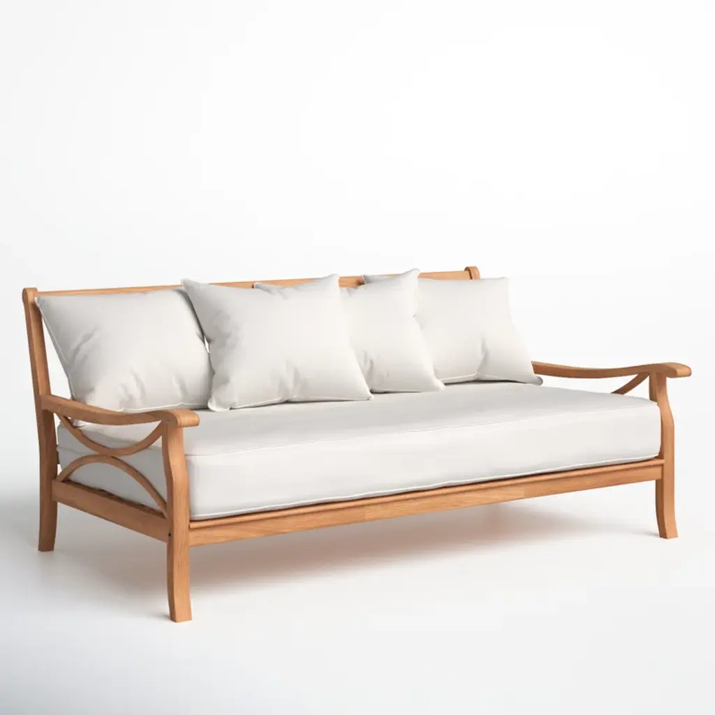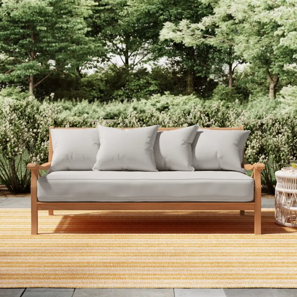 Transform your outdoor space into a cozy oasis with this patio daybed. Designed for ultimate relaxation, it combines solid teak wood with plush, weather-resistant cushions for an inviting garden, patio, or poolside retreat. The spacious 79" design is great for lounging solo or with friends, making it the ideal spot for sunbathing, reading, or afternoon naps. Each cushion comes with a removable cover that you can toss into the washing machine for easy maintenance. Plus, it features a natural wood grain finish for an extra layer of rustic charm.