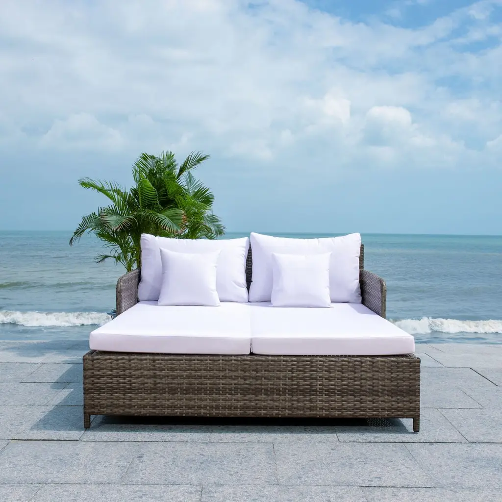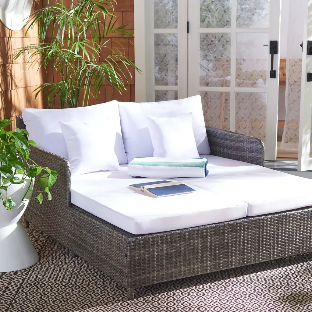 This daybed is perfect for lazing in the sun, napping in the shade, or playing Uno with the kids. The cushions and pillows are amply filled for long-lasting comfort; the woven frame is durable as well as chic.