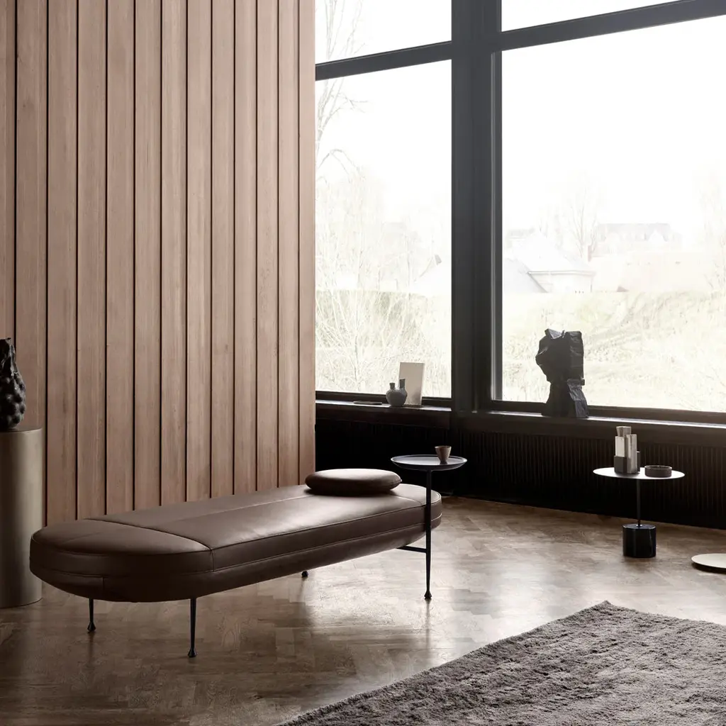 Floating, feeling lazy, and slowly drifting. This calm setting forms the inspiration for the daybed, CANOE. A low platform that invites you to take a well-earned break. With curves and lines inspired by the well-composed symmetry of the canoe.
