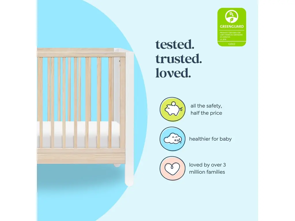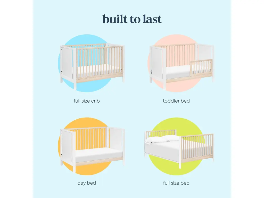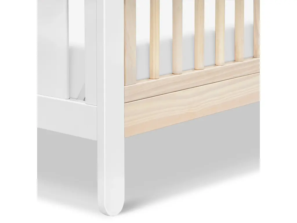 The Marisol 4-in-1 Convertible Crib brings modern style and versatility to your nursery. Designed to grow with your little one, it transitions seamlessly from crib to toddler bed, daybed, and full-size bed for years of use. With its sleek two-toned finish and unique popsicle-shaped feet, this crib creates a stylish and functional centerpiece for your baby's room.