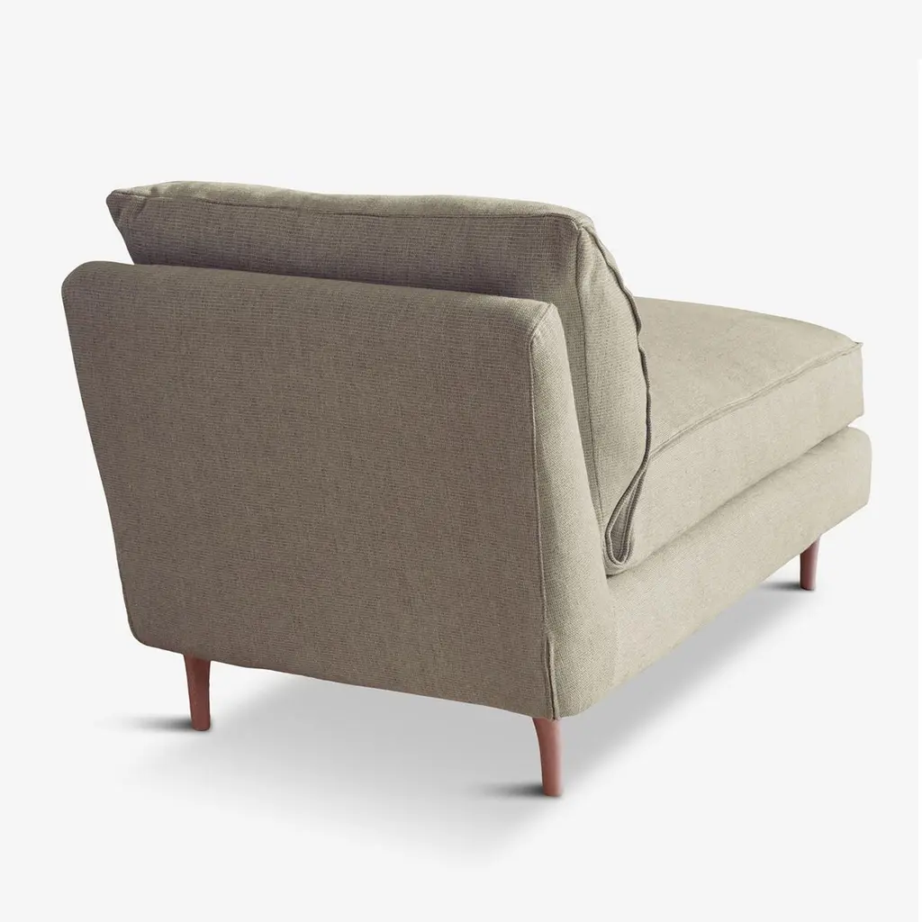 This harmonious and extremely compact daybed proposes a plush design with a fold-up back cushion to enjoy moments of authentic relaxation. With four polished aluminum feet. The luxurious upholstery is accented with contrasting details. Designed by ddp Studio. All materials used are 100% natural and biodegradable. Entirely handmade. The cover is removable. Different options are available. Please contact the Concierge for further details.