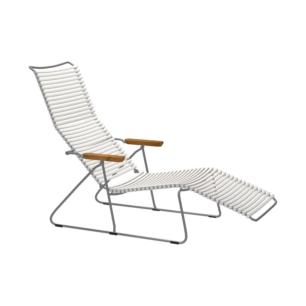 The Click Outdoor Sun Lounger from Houe sets you up for light and airy comfort for time well-spent outdoors. Inspired by classic outdoor furnishings with its slatted design, the backrest and seat allow air to pass through while supporting you with their subtle bend. 7 adjustable position settings let you find the best angle for relaxation while bamboo armrests reference the warmth of the outdoors while standing up to the elements and regular daily use.Highlights