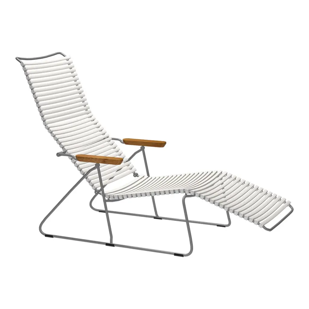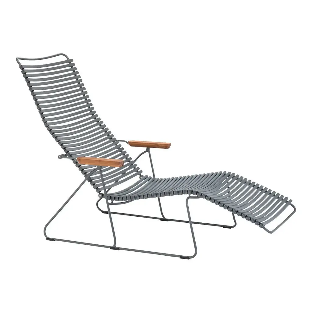 The HOUE Click Outdoor Sunlounger, designed by Henrik Pedersen, masterfully combines Scandinavian aesthetics with innovative materials to create a versatile lounger that's both visually striking and remarkably practical. This contemporary piece reimagines outdoor relaxation through thoughtful engineering and sustainable material choices. The lounger's distinctive profile emerges from its ergonomically curved backrest, which offers multiple adjustment positions to accommodate various lounging preferences. The frame, crafted from powder-coated gray steel, provides a robust foundation while maintaining a sleek, architectural presence. The seating surface combines durability with comfort through precisely spaced plastic lamellas, engineered to withstand outdoor conditions while allowing for optimal airflow and water drainage. Adding a natural touch to the modern design, bamboo armrests provide both tactile warmth and environmental consciousness. This sustainable material choice not only enhances the lounger's aesthetic appeal but also offers comfortable support that won't overheat in direct sunlight. The combination of materials results in a chair that's both weather-resistant and environmentally mindful. Perfect for pool areas, garden spaces, or contemporary patios, the Click Sunlounger demonstrates HOUE's commitment to creating outdoor furniture that balances form, function, and sustainability. Its sculptural presence makes it an attractive addition to any outdoor setting, while its durable construction ensures it will maintain its appeal through multiple seasons of use. Assembly required.