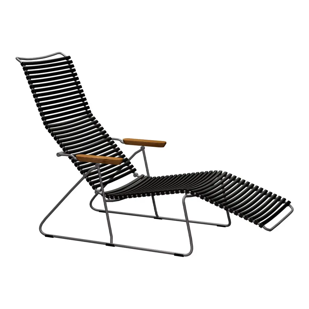 The HOUE Click Outdoor Sunlounger, designed by Henrik Pedersen, masterfully combines Scandinavian aesthetics with innovative materials to create a versatile lounger that's both visually striking and remarkably practical. This contemporary piece reimagines outdoor relaxation through thoughtful engineering and sustainable material choices. The lounger's distinctive profile emerges from its ergonomically curved backrest, which offers multiple adjustment positions to accommodate various lounging preferences. The frame, crafted from powder-coated gray steel, provides a robust foundation while maintaining a sleek, architectural presence. The seating surface combines durability with comfort through precisely spaced plastic lamellas, engineered to withstand outdoor conditions while allowing for optimal airflow and water drainage. Adding a natural touch to the modern design, bamboo armrests provide both tactile warmth and environmental consciousness. This sustainable material choice not only enhances the lounger's aesthetic appeal but also offers comfortable support that won't overheat in direct sunlight. The combination of materials results in a chair that's both weather-resistant and environmentally mindful. Perfect for pool areas, garden spaces, or contemporary patios, the Click Sunlounger demonstrates HOUE's commitment to creating outdoor furniture that balances form, function, and sustainability. Its sculptural presence makes it an attractive addition to any outdoor setting, while its durable construction ensures it will maintain its appeal through multiple seasons of use. Assembly required.