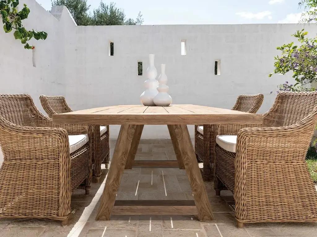 Comforting balance and soft lines remake the house into a cozy home. Cloe collection is rich in components for outdoor spaces, from living areas to dining spaces and pool-side ones. Single, and double sun loungers and shell daybeds recall a real inviting love nest. The collection shines for its powder-coated aluminum frame and the natural round cross-section fiber which make the braid produce the characteristic woodcarving effect both in the look and in the slightly irregular touch.