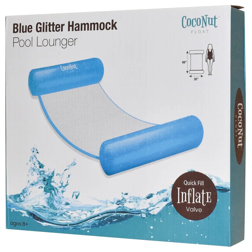 Blue Glitter Hammock Pool Lounger by CocoNut Float - Adult Size Multi-Purpose Inflatable Drifter, Exercise Saddle & Lounge Chair - Versatile Ride-On for Summer & Swim Parties. Reach new levels of relaxation with these Glitter Hammock Loungers! Our hammocks come in fun, vibrant colors to truly make you stand out! Sit on the mesh center like a chair or lay your head back on the inflated pillow and float the day away. Made of heavy duty, durable 0.25mm vinyl, this float is built to last and resist punctures. Ages 8+ Salus Brands is the proud brand owner of CocoNut Float. We are dedicated to creating fun, imaginative, and creative toys. We study the latest trends and bring you the best, most unique toys on the market. Our products have been featured on radio and new stations across the country, countless blogs, and even The View! We strive to provide quality products and superior customer service, while continuously innovating with new, distinctive designs. FUN IN THE SUN - This chic & stylish Glitter Hammock Lounger Pool Float is perfect for pool parties and hanging with your best pals. Our hammocks come in fun, vibrant colors to truly make you stand out! Sit on the mesh center like a chair or lay your head back on the inflated pillow and float the day away. ONE OF A KIND FLOATING OASIS - Our pool floats make the perfect addition to pool or lake days, celebrating events like Memorial Day, 4th of July, Labor Day and birthday swim parties! You will be sure to have the coolest hammock floats around, and will be riding the waves in style during all of your water events. EXCEEDS THE INDUSTRY STANDARD FOR EXCELLENCE: Considered the "luxury car of swimming pool toys," the Coconut Float line is known for being the best of the best. Easy to travel w/ & inflate quickly. Experience the difference! MADE TO LAST HIGH-QUALITY MATERIALS: All of our floats are made with heavy-duty 0.25mm vinyl. This float is built to last and resist punctures. Made of extra thick and durable materials, these are not cheap flimsy floats. PREMIUM ANTI-LEAK WATER TOYS: Created by dreamers & brought to life on sun-soaked beaches & crystal-clear pools, Coconut Float brings simple pleasures w/ an imaginative line of unique inflatables, beach balls & outdoor toys.