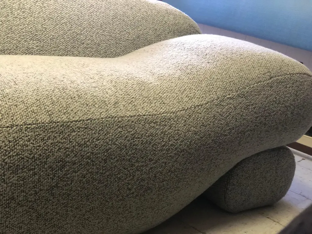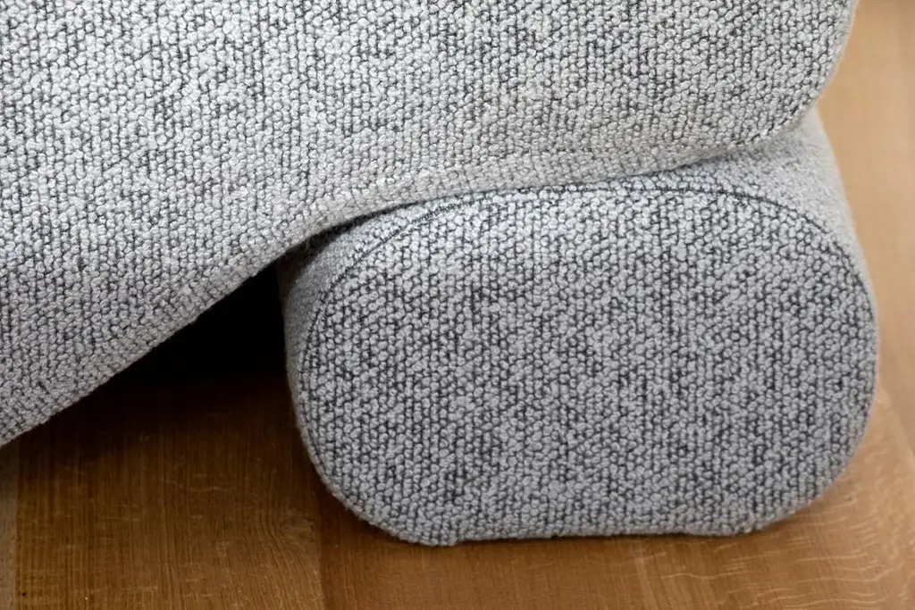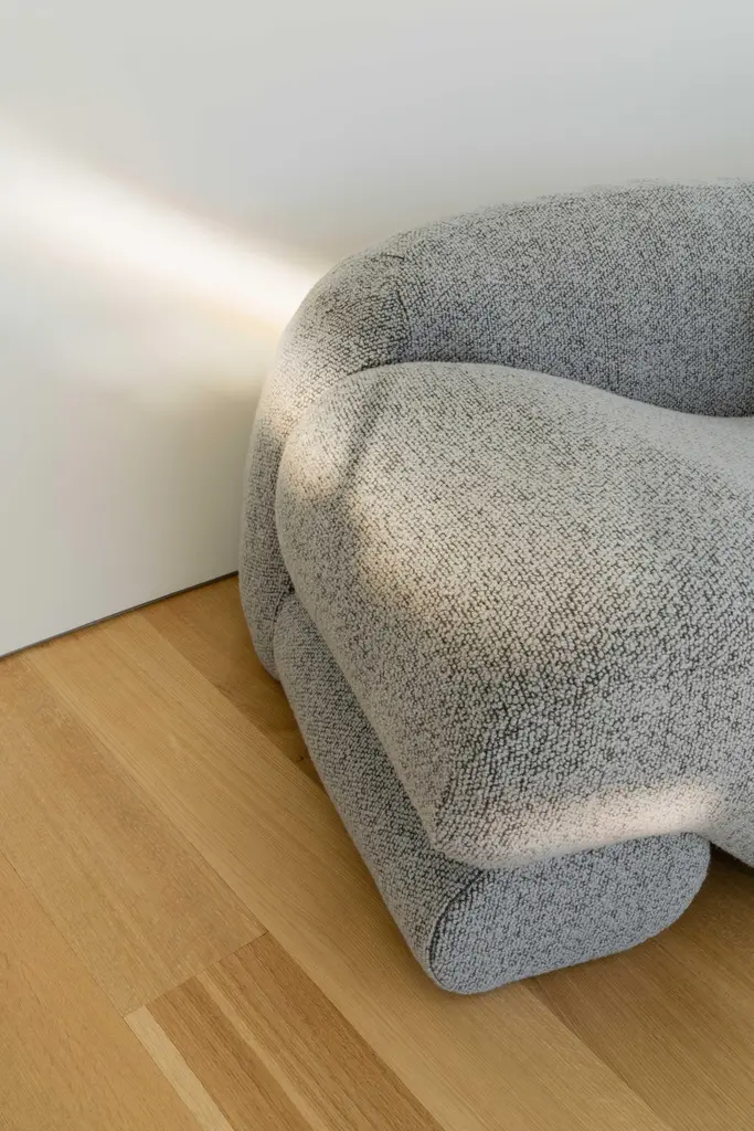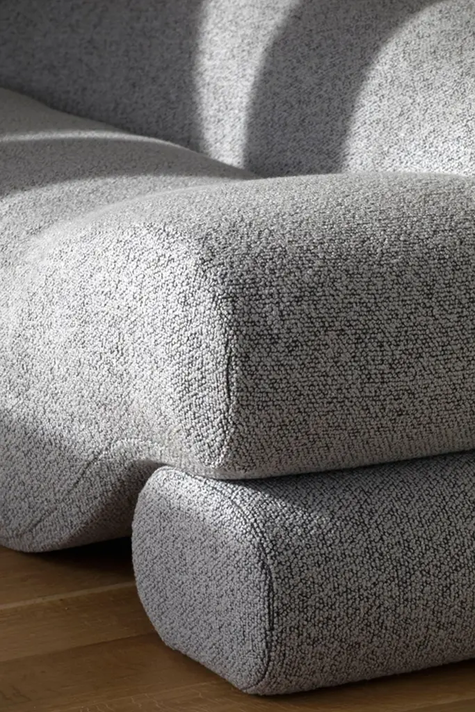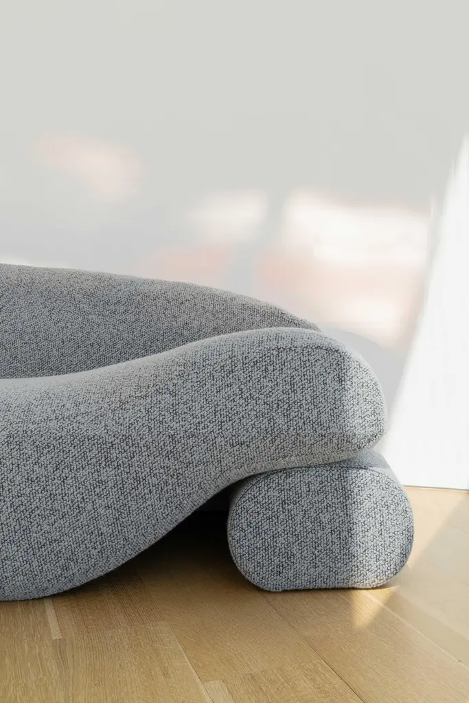 The Beanie lounger is a comfortable textile-covered lounger whose seat is comprised of one long bean bag. The sofa incorporates daybeds facing opposite directions. Its soft structure is filled with organic latex and lentil beans, which support the natural curves and movements of the body. The filling in the bean bags is very supportive, but also malleable enough to conform exactly to the shapes required for proper posture. The beanie is made entirely of natural materials and assembled in two parts.It is available in a wide range of sizes, colors, and fabrics.Materials: lentil beans/ organic Latex/ foam/ wood and textile.