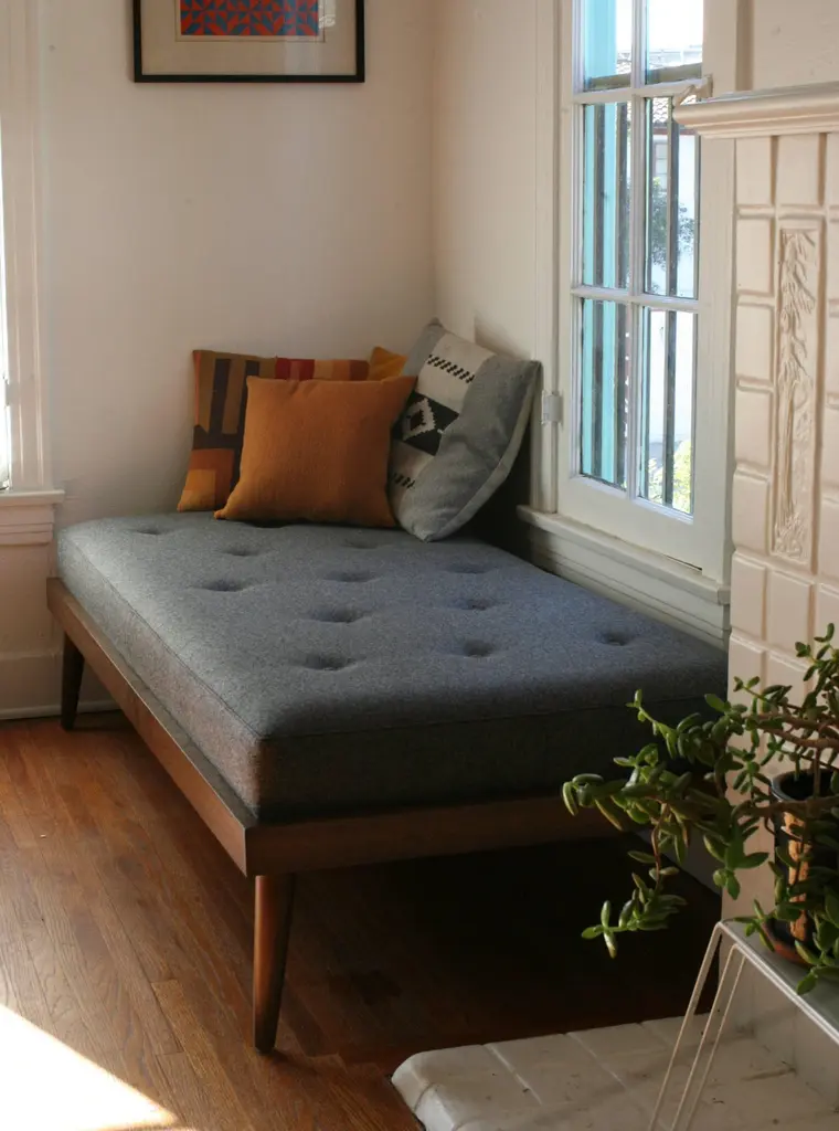 The Fortuna bench is an updated version of a Classic modernist daybed. The solid walnut base provides strength and style while it's high density cushion will become the more versatile seat in your house.