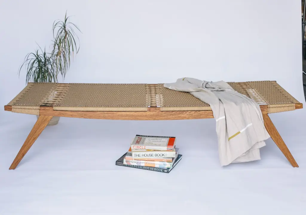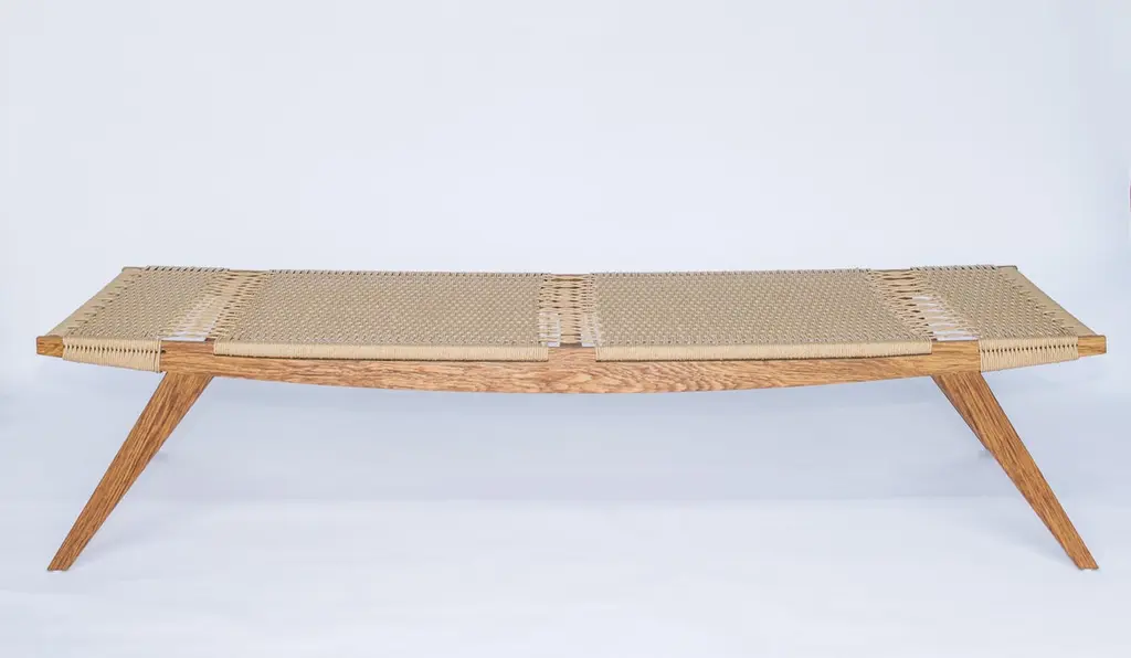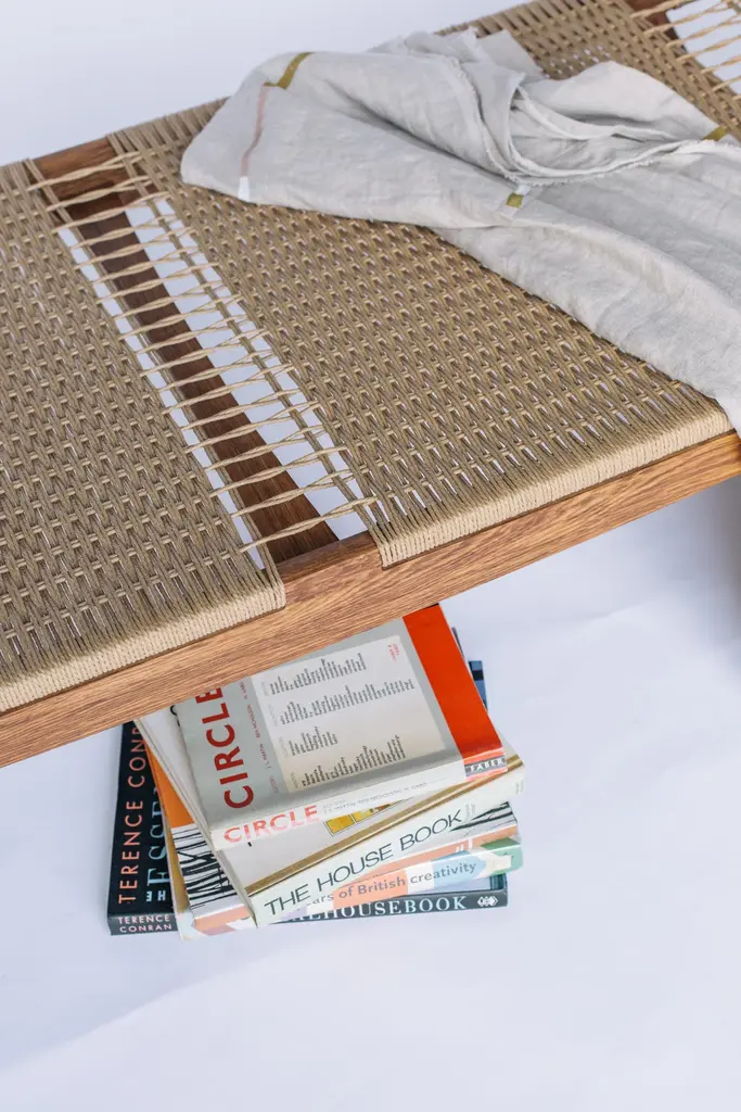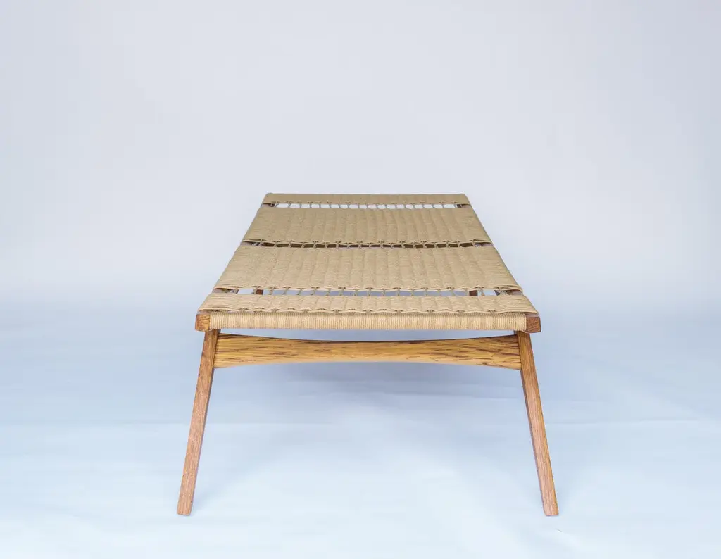 This one-off Lambda daybed is handmade from sustainably-sourced brown oak in the East of England. Brown oak is an English oak that is infected with the Beefsteak Fungus, which releases a tannin-like acid that turns the oak a rich, chocolatey-brown colour. Both modern and traditional joinery techniques are employed, ensuring the best attention to detail and quality. The bed is woven in a natural 3-ply Danish papercord.Our iconic pi stool range draws its inspiration from the 20th century modernist idiom, Scandinavian modern design, Danish furniture, and Japanese aesthetics. Also influenced by the modern craft movement.The seats are woven by experienced craftspeople to the highest standard.The natural oil based finish gives a beautiful lustre that will last for many years without the use of a petrochemical, sprayed product.Our stools, benches and daybeds are suited to many uses, such as ottomans, side tables, night stands and foot stools. Unless specified as "in stock", all of our products are handmade to order in our Norwich, UK workshop. We appreciate your patience when our lead times are longer than usual.