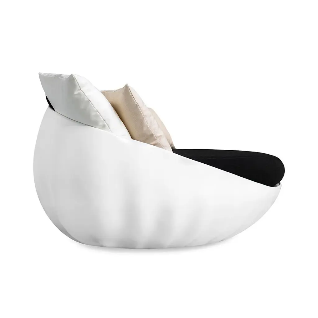 Contemporary Outdoor Lounger In Black Upholstery And White Shell Design